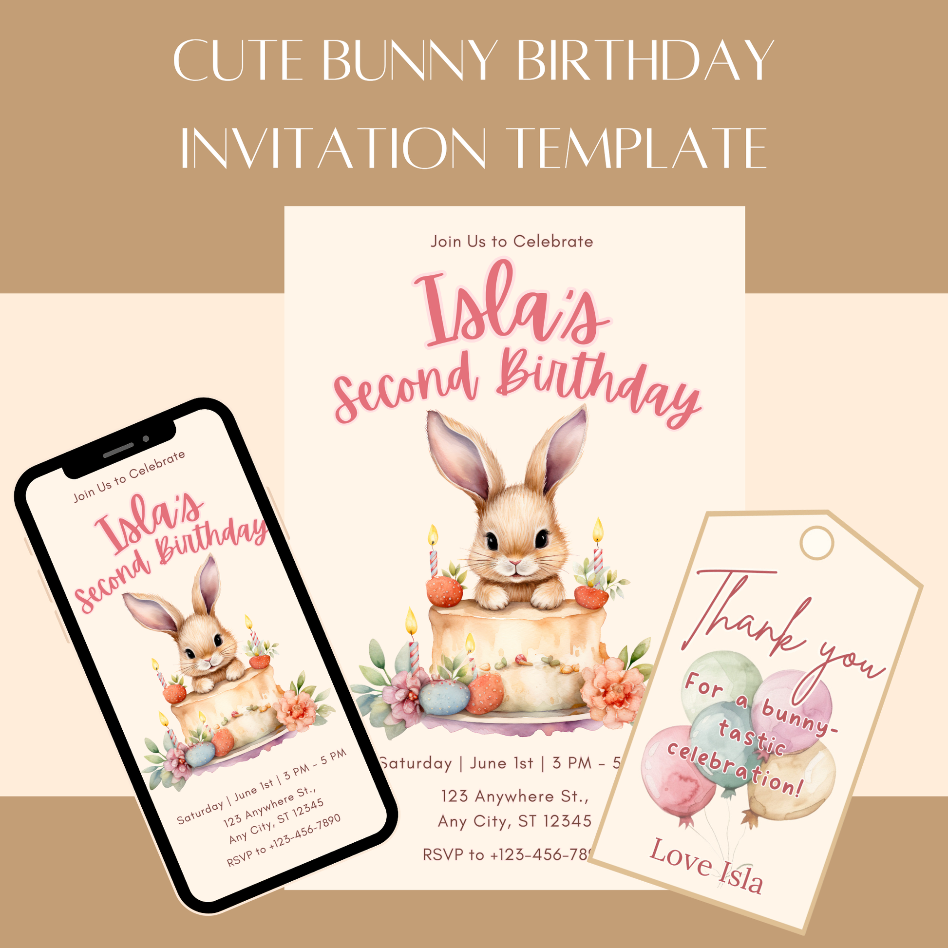 Make your little one’s birthday somebunny to remember with this sweet and customizable bunny-themed invitation set—perfect for creating a celebration full of fluff, fun, and happy memories! 🐇💗🎉