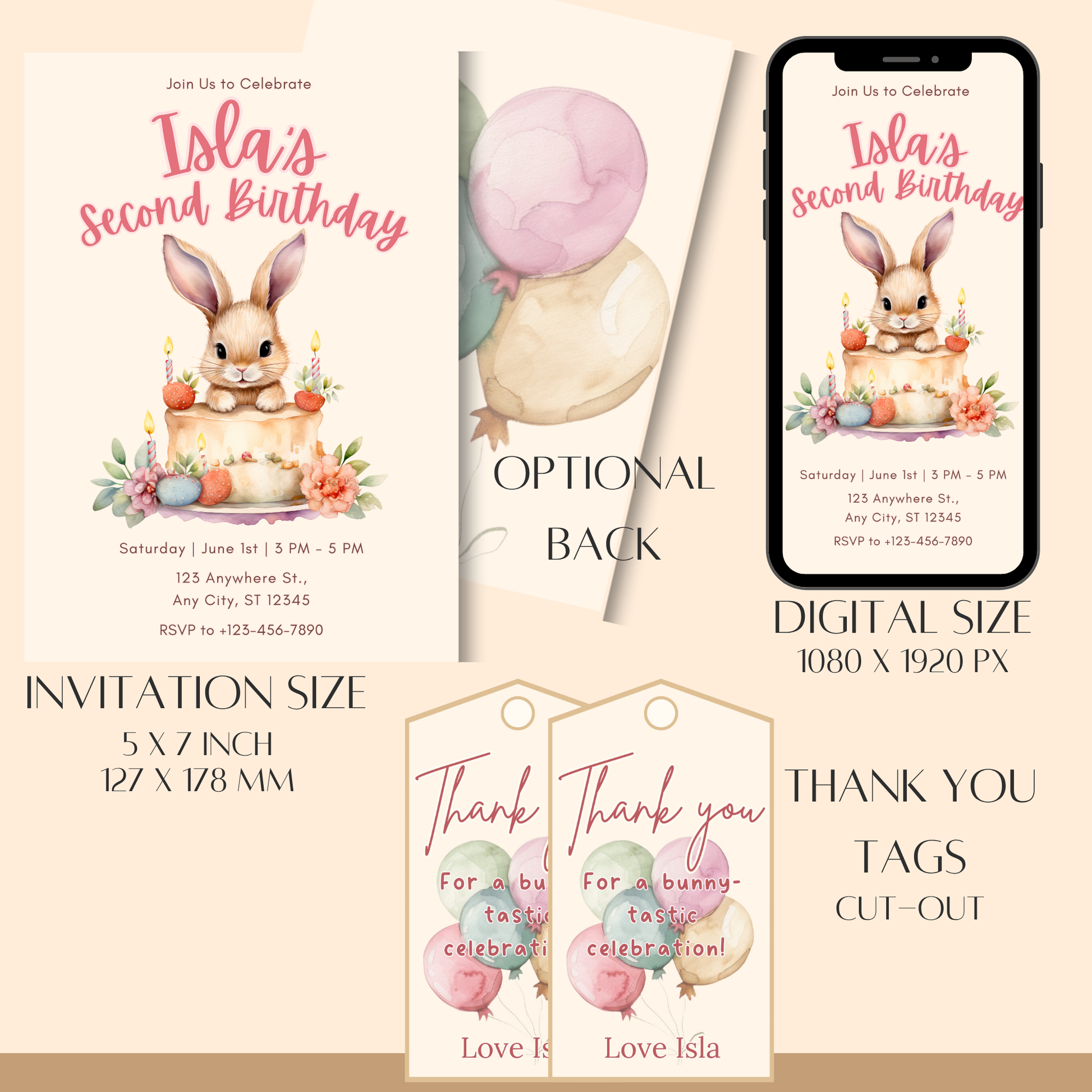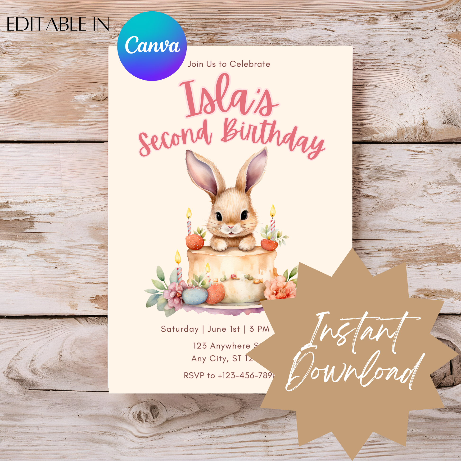 🐰 The editable bunny birthday invitation (for both print and digital use)
