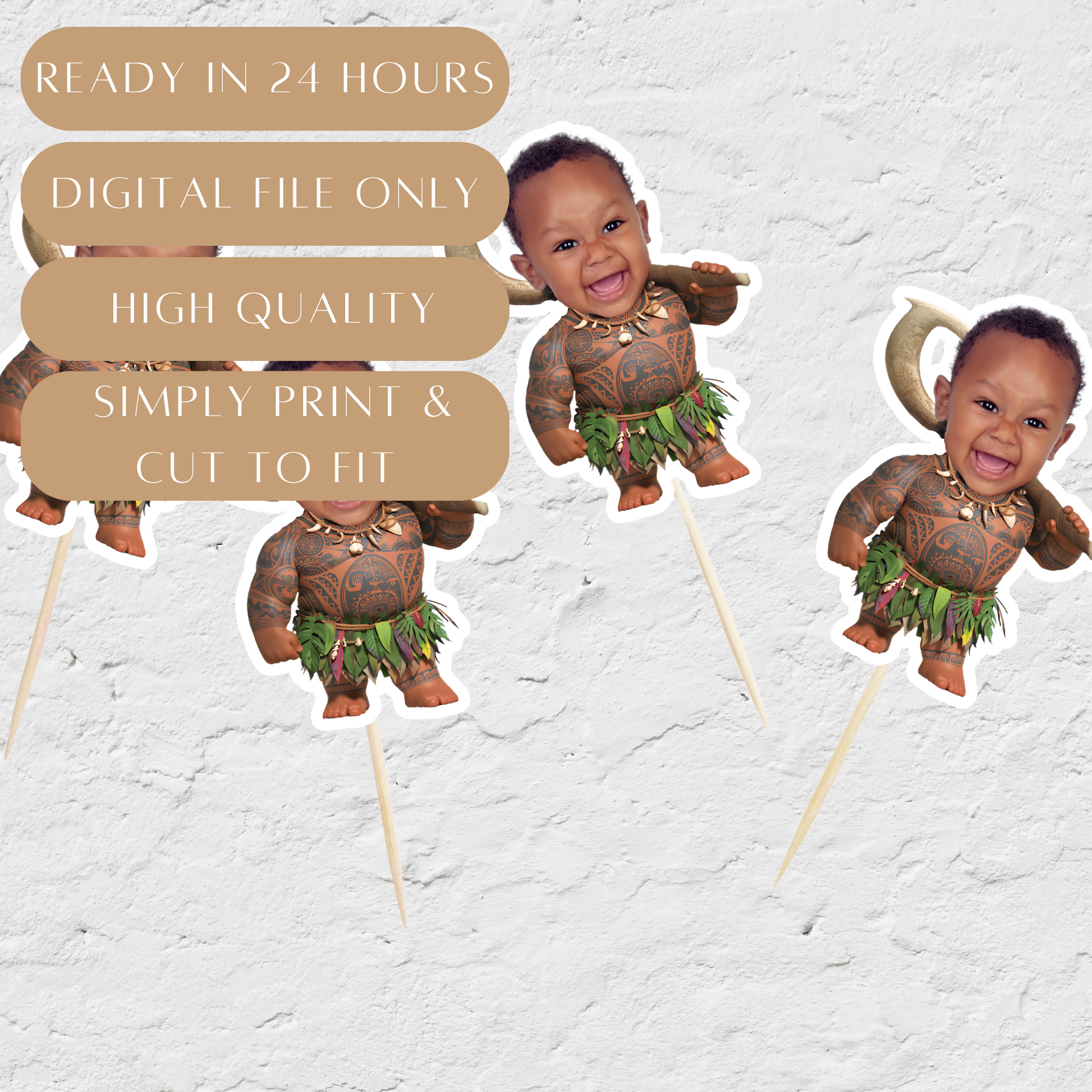 Make your child’s birthday legendary with our Custom Face Maui Cupcake Topper! Featuring your little one’s face on Maui’s strong, tattooed body (complete with his magical fishhook!), this hilarious and heroic topper is sure to wow guests and make your party unforgettable.