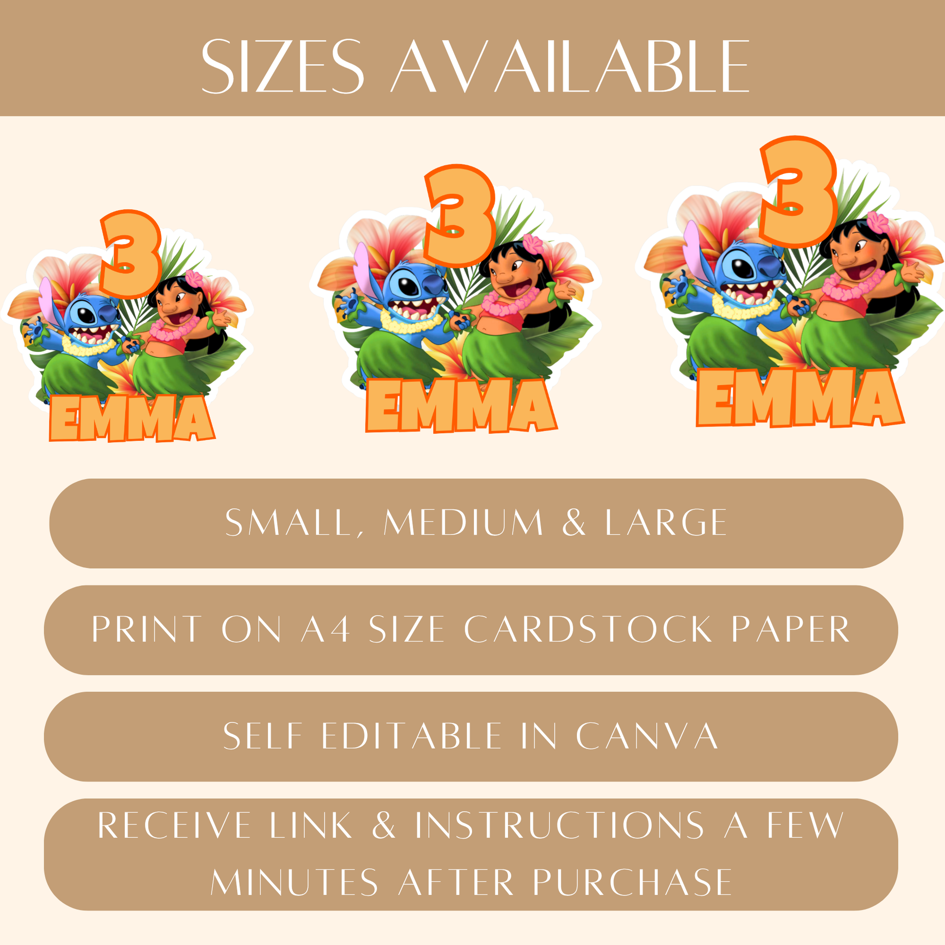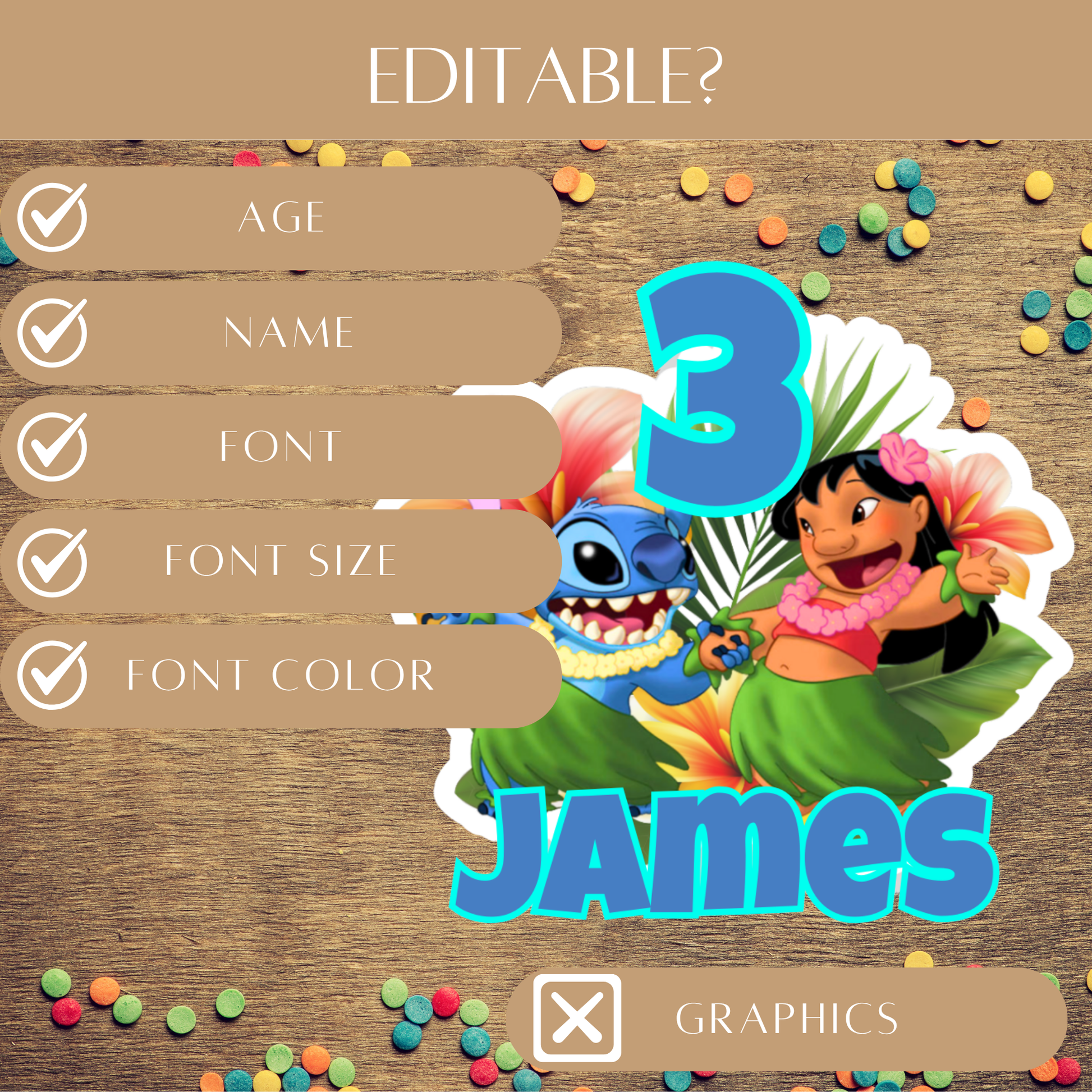 Editable Lilo & Stitch Cake Topper – Digital Download