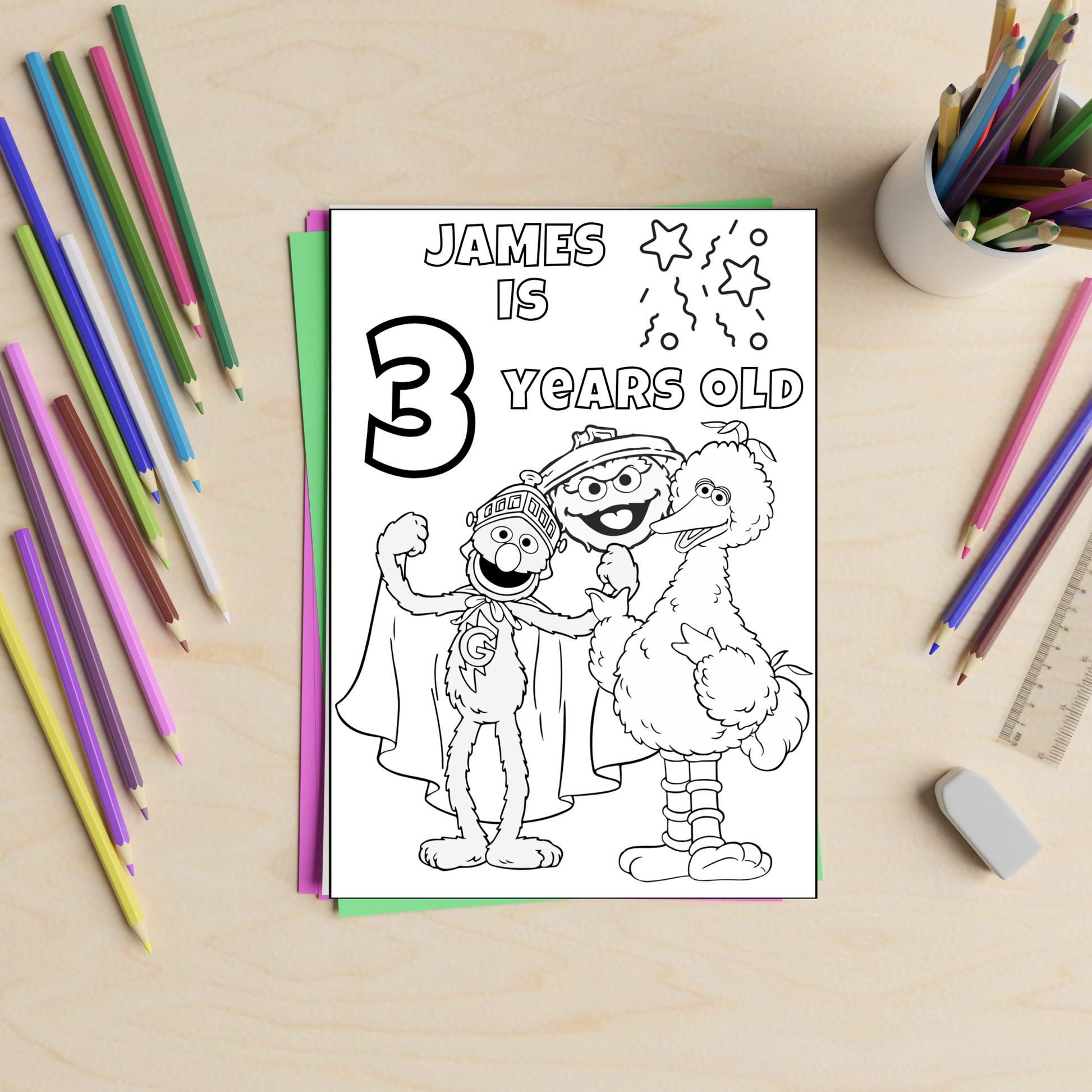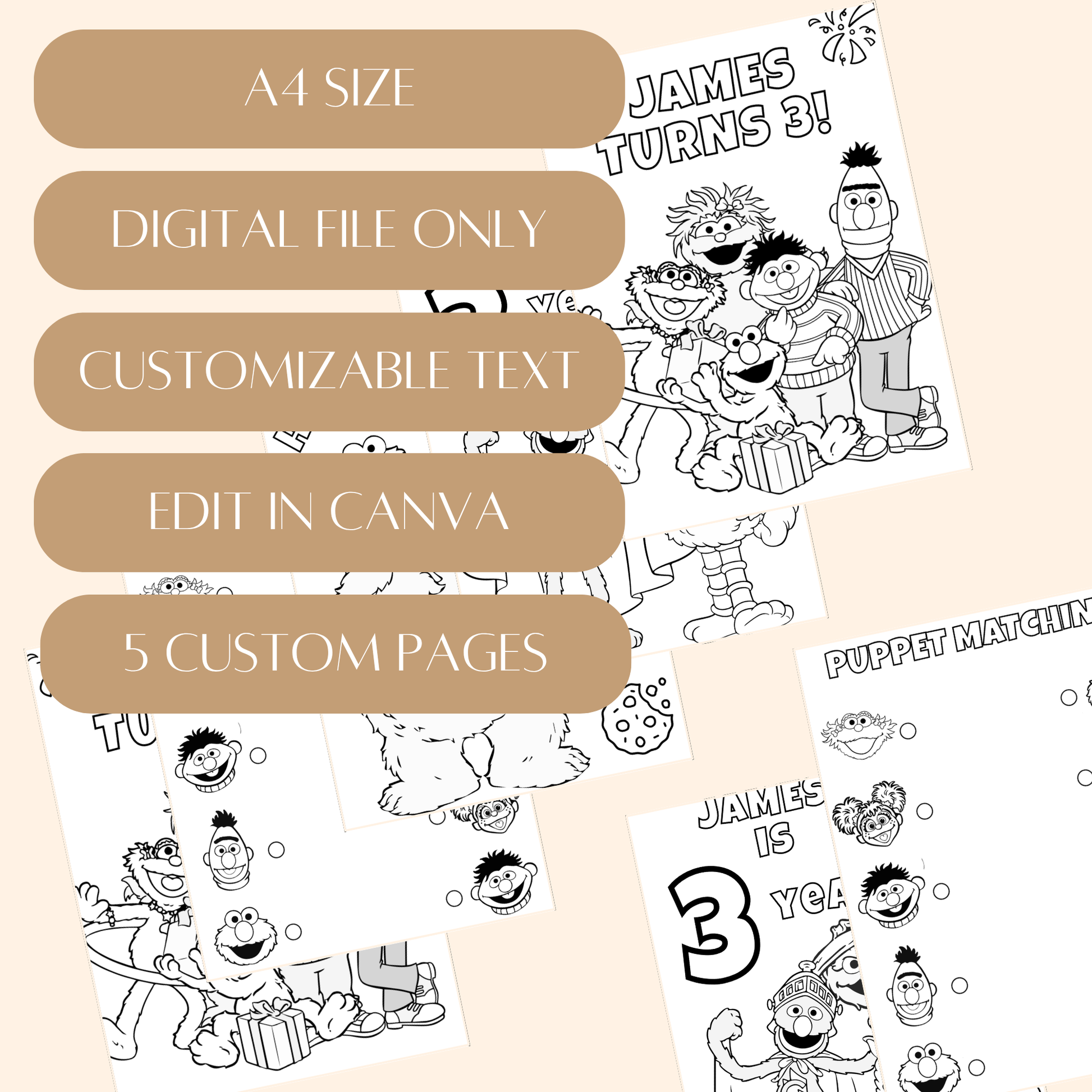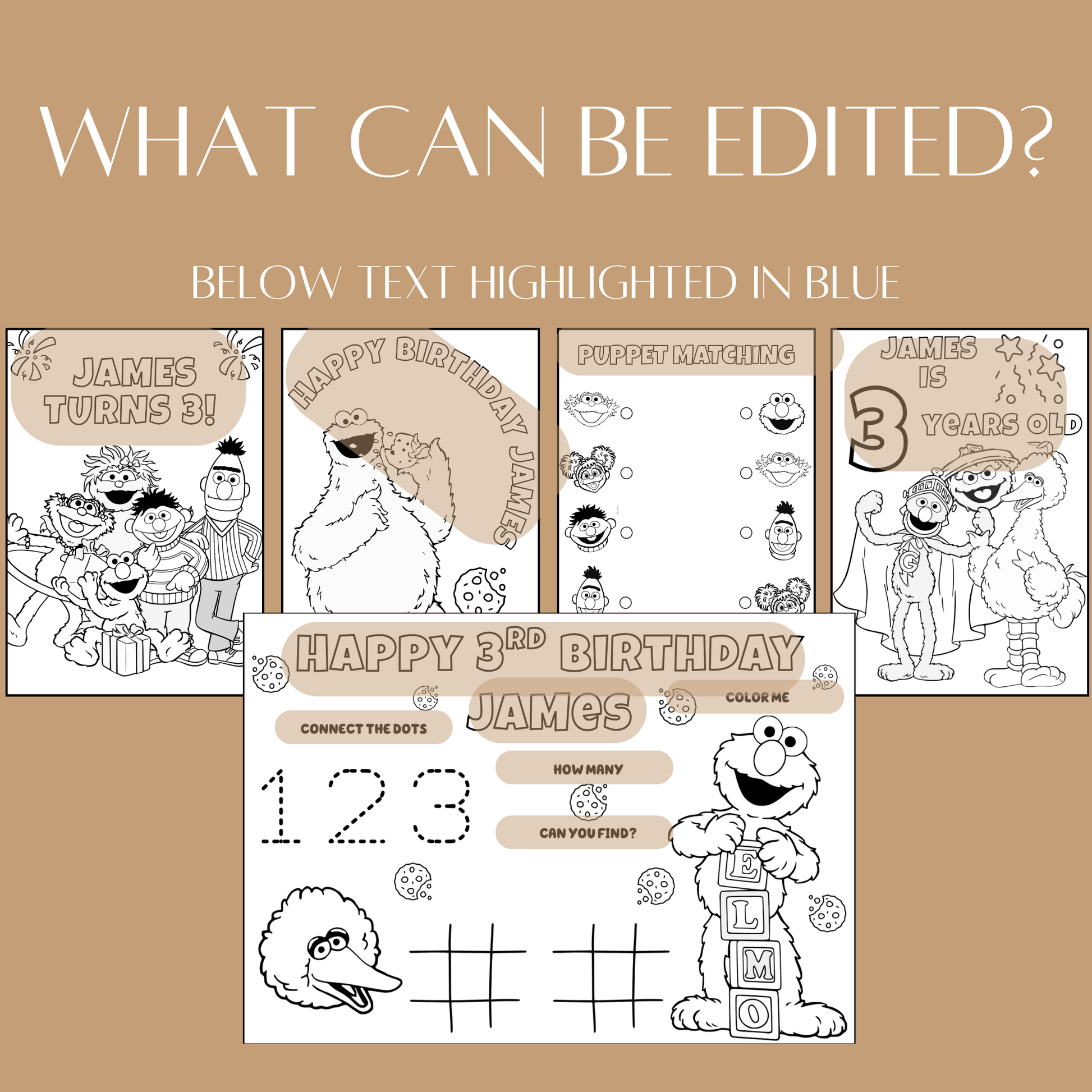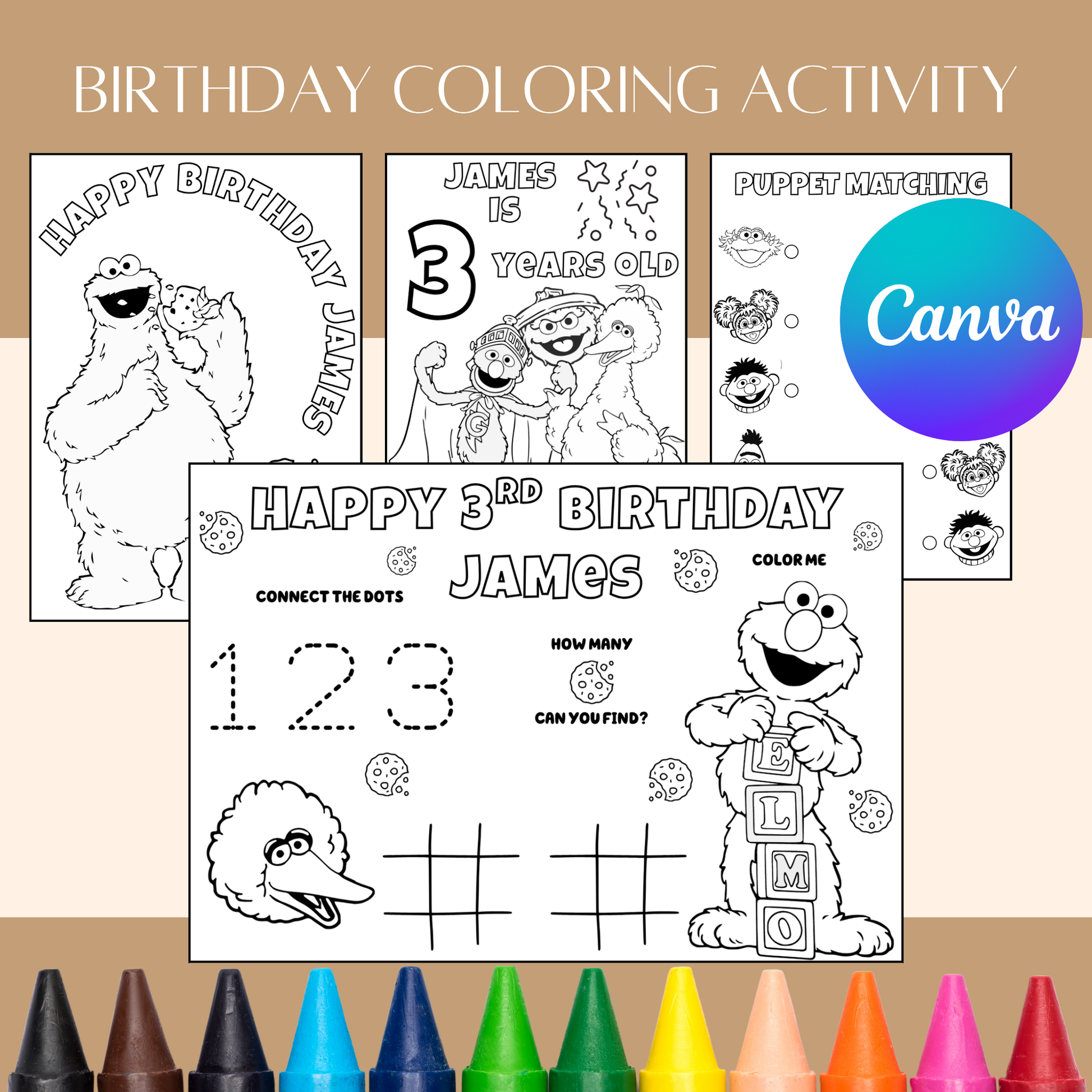 Editable Sesame Street Birthday Coloring Pages – Digital Download
