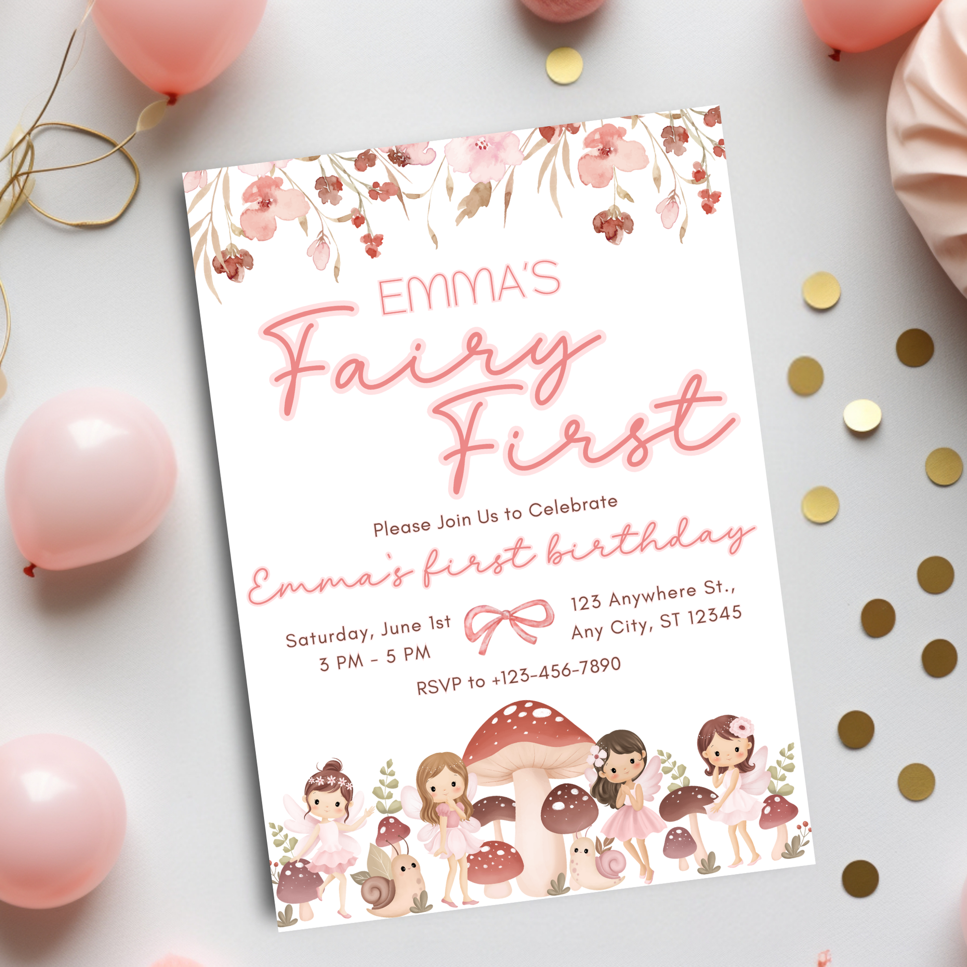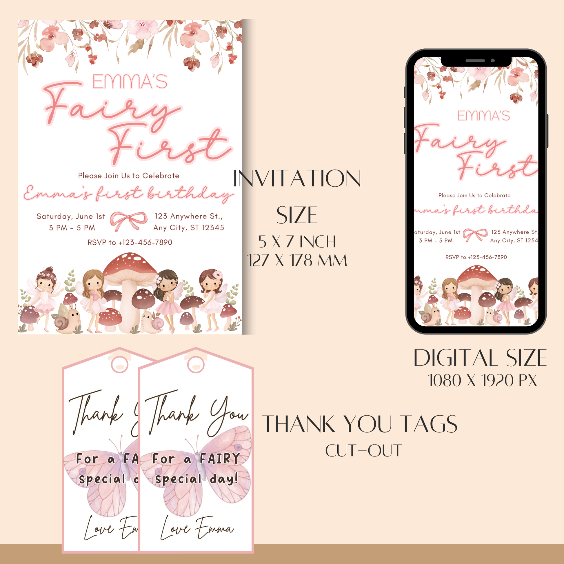 ✨  The editable Fairy First birthday invitation template (for both digital and print use)