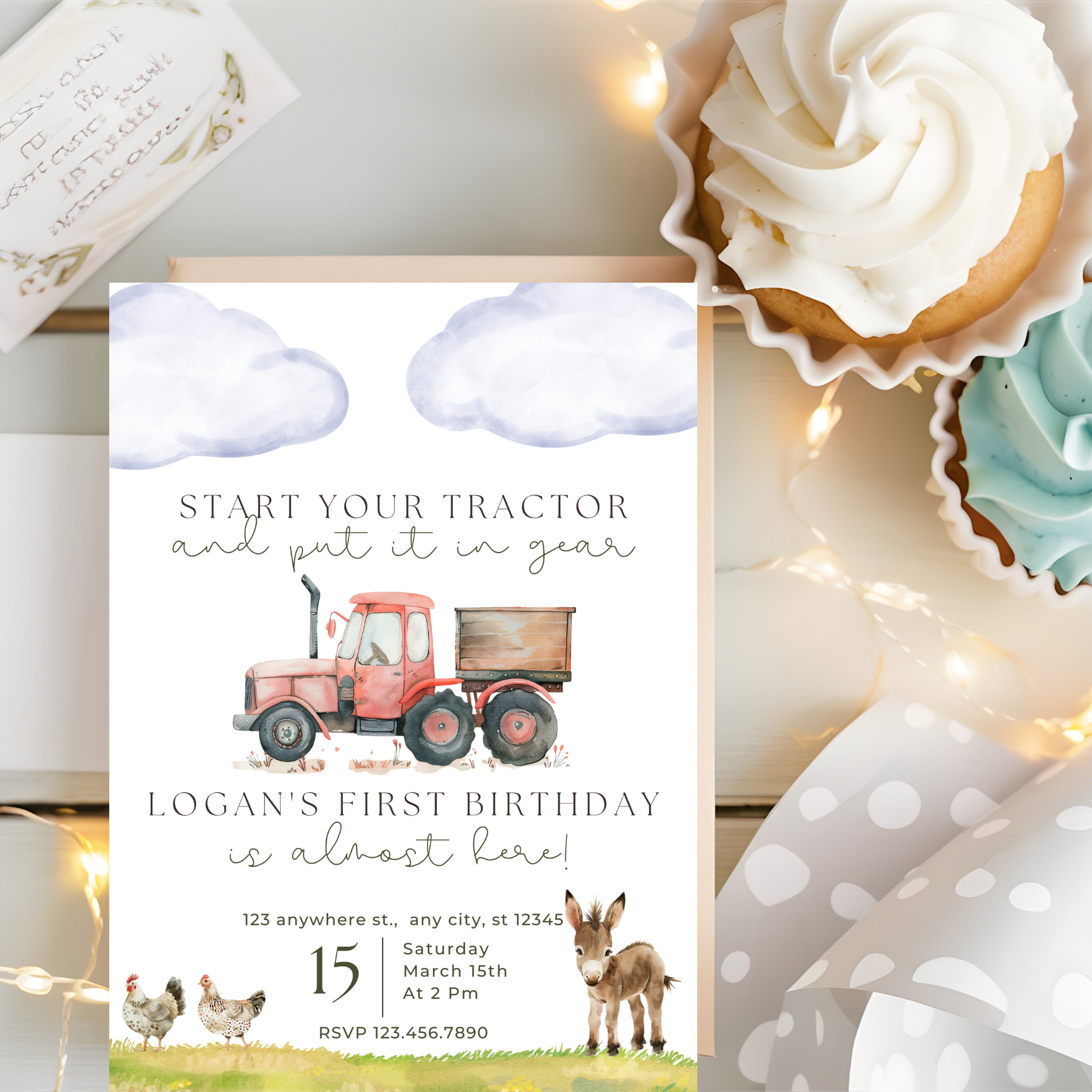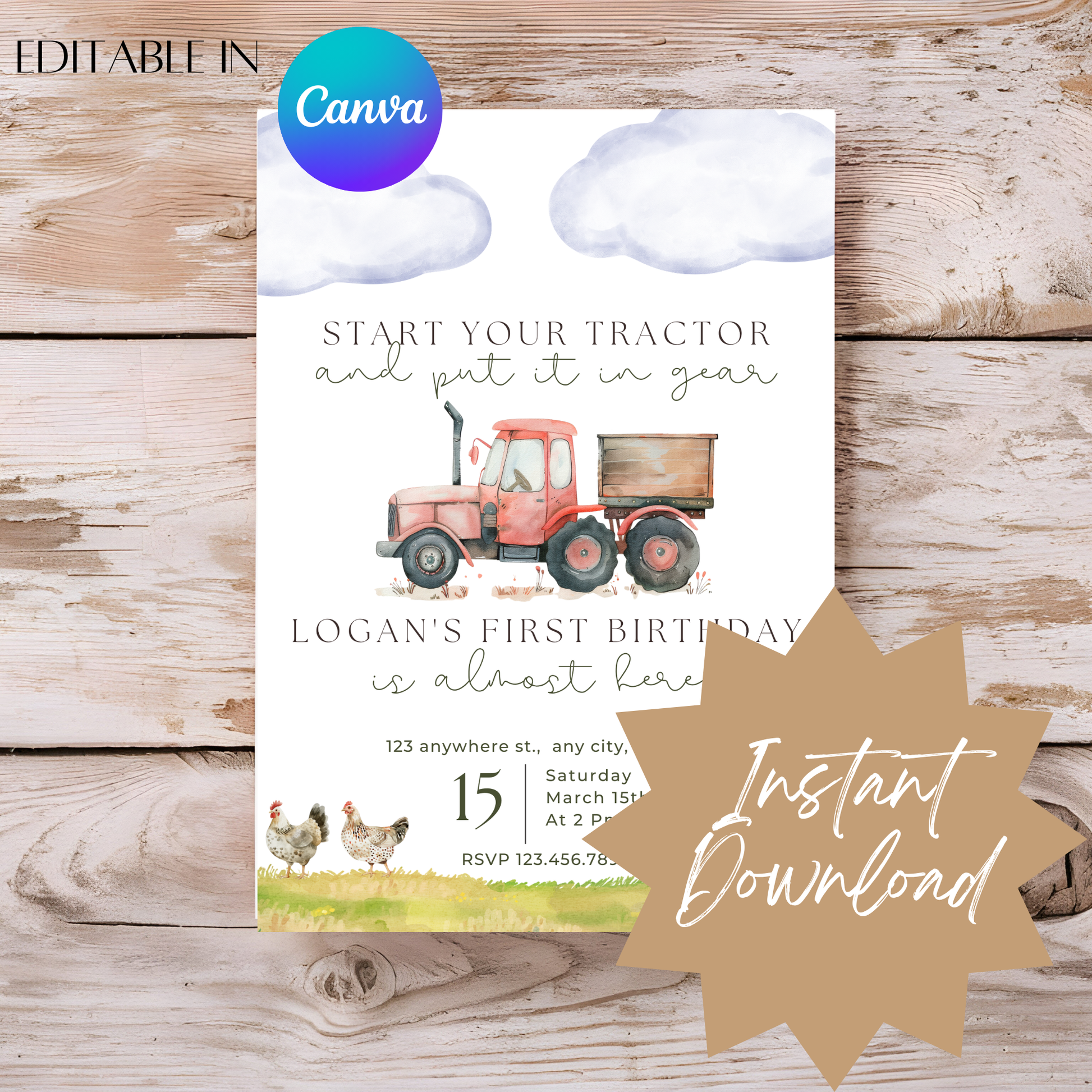 🚜 Printable Invitation Included – Print at home or use a local or online print shop.