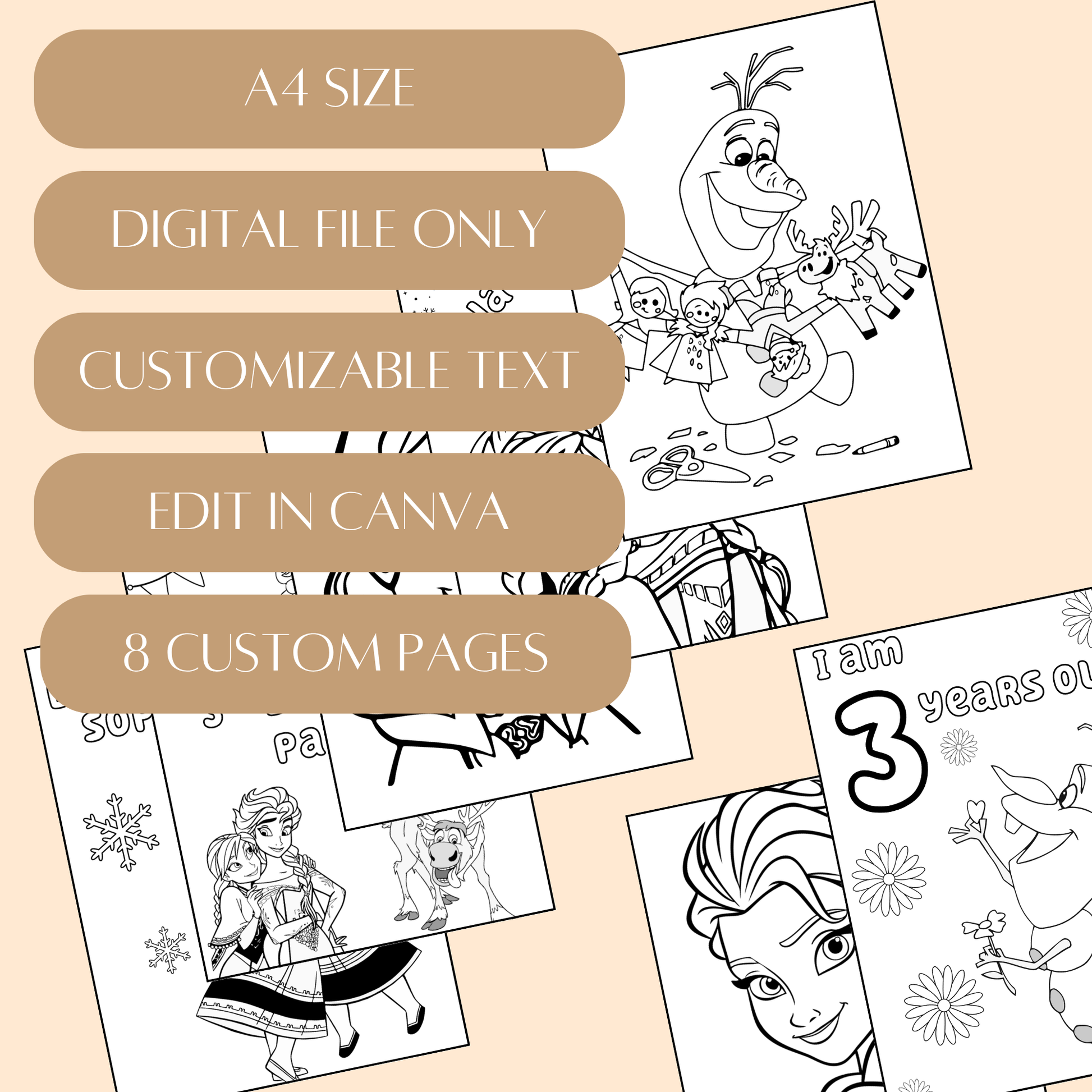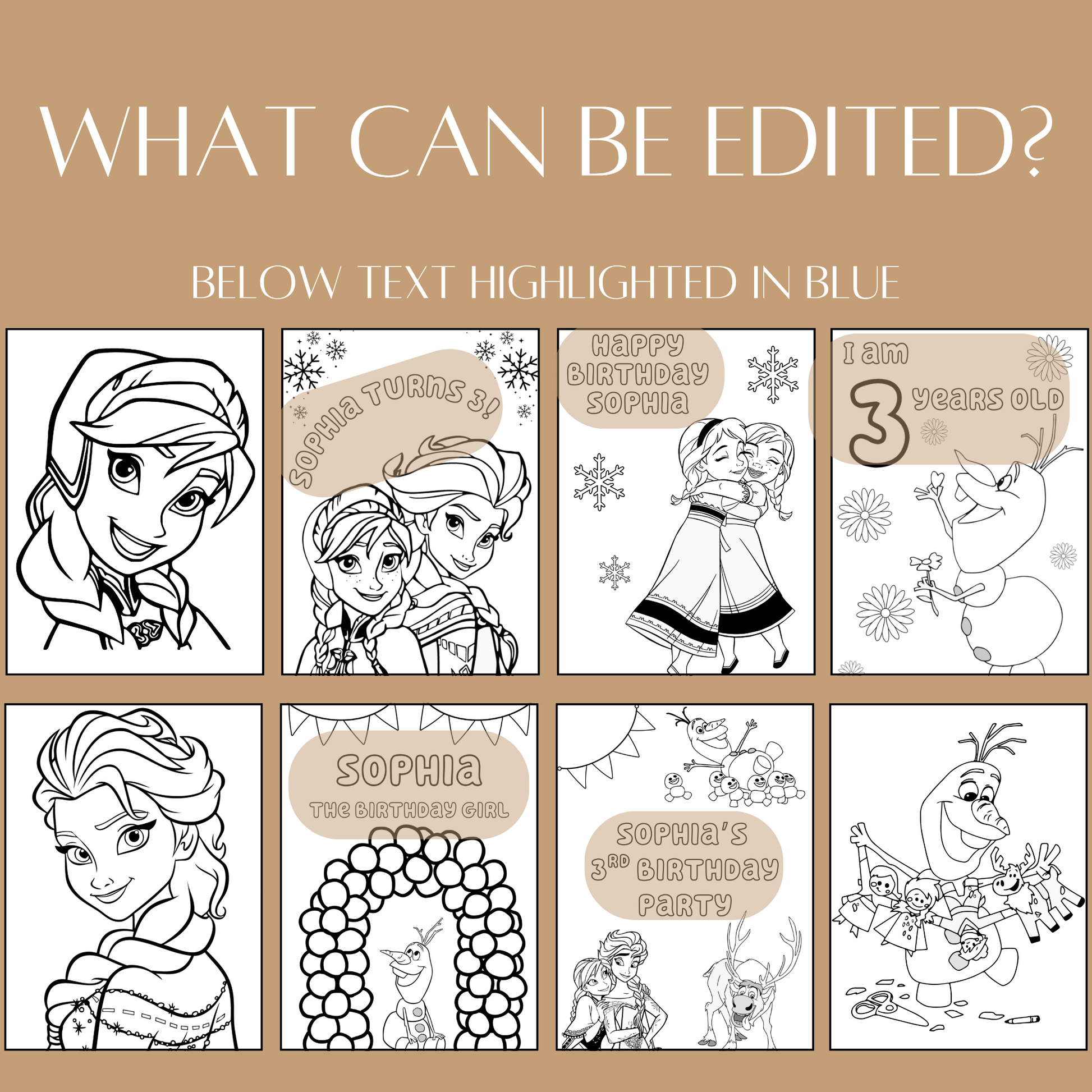 Editable Frozen Birthday Coloring Activity – Digital Download