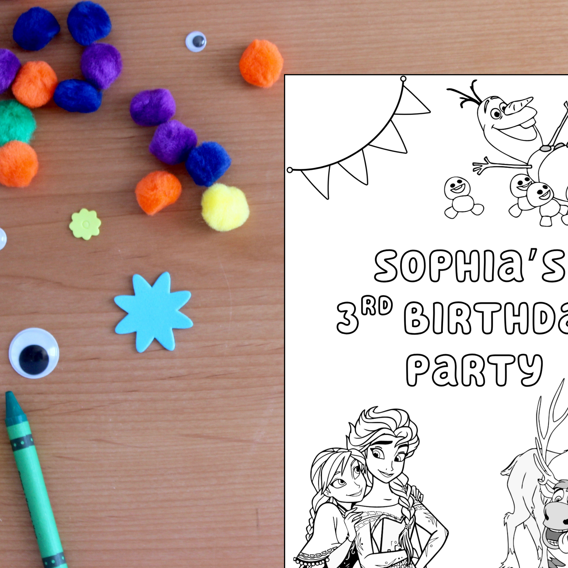 Make your Frozen birthday celebration even more magical with this fun, personalized coloring activity—perfect for little artists who love Elsa, Anna, and Olaf!