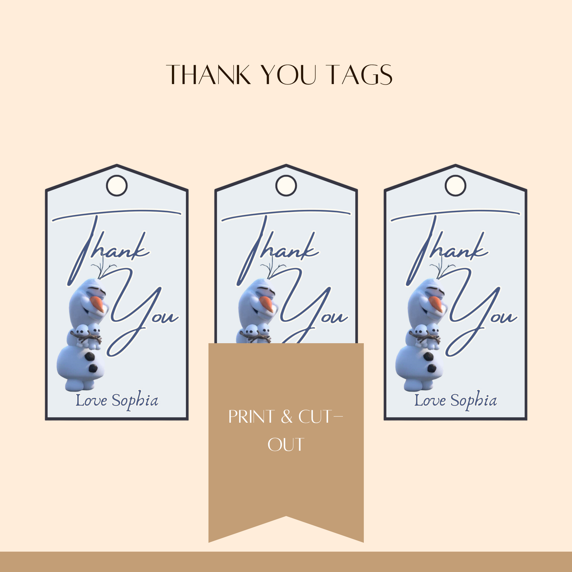 Add your thank-you tags to party favors and enjoy a heartwarming day of Frozen fun!