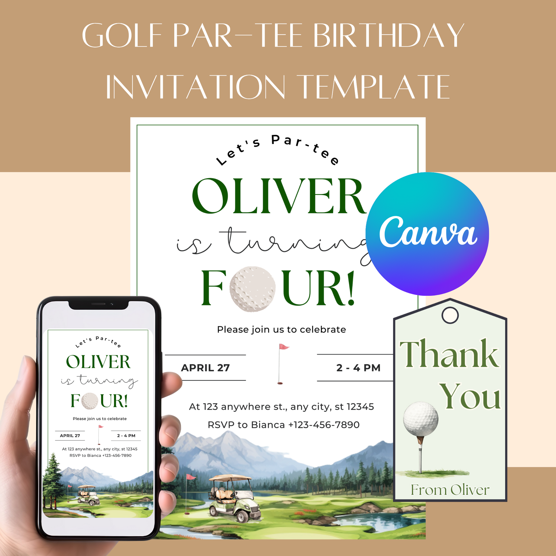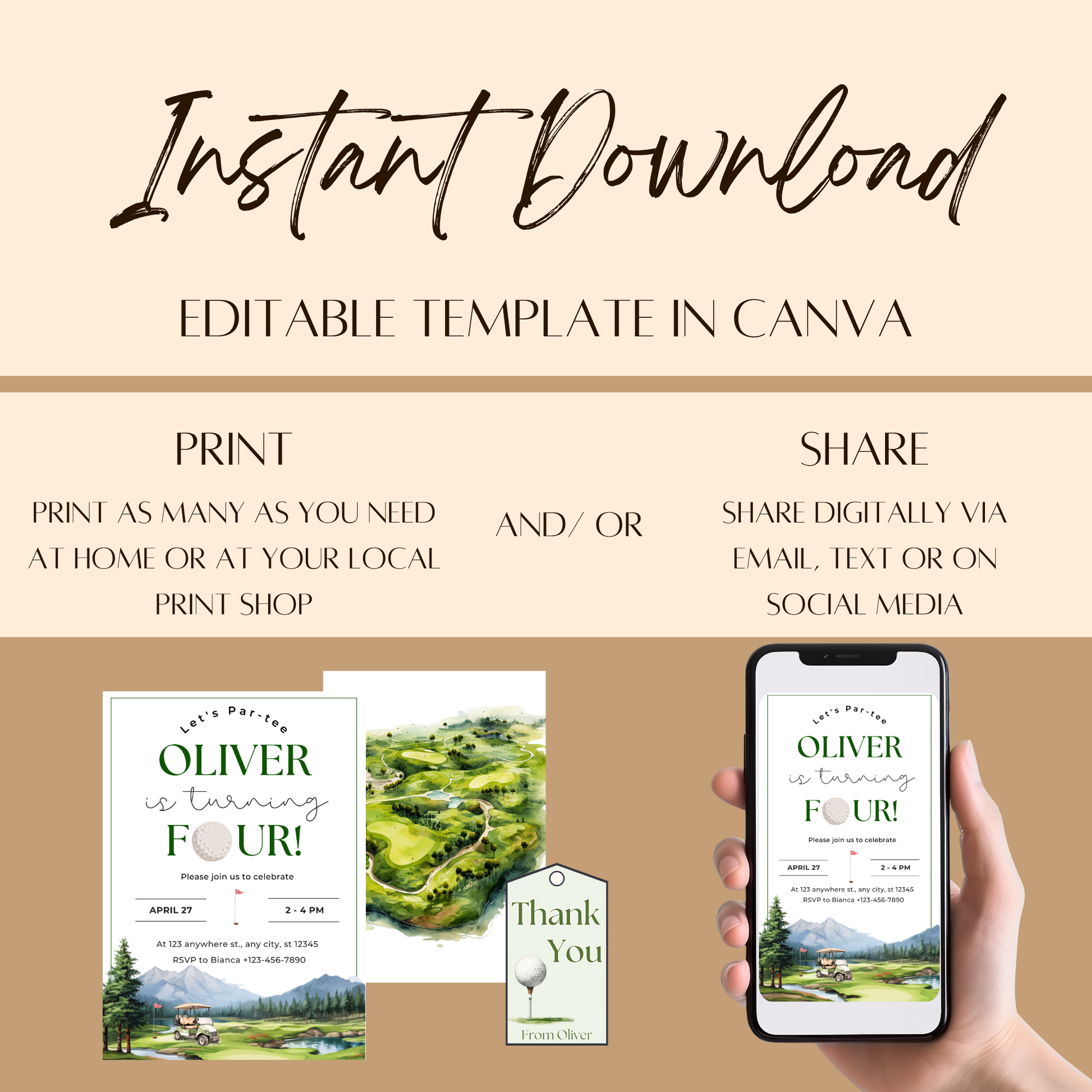 ⛳ Editable in Canva – Easily personalize your child’s name, age, date, and party details using Canva’s free, beginner-friendly editor.