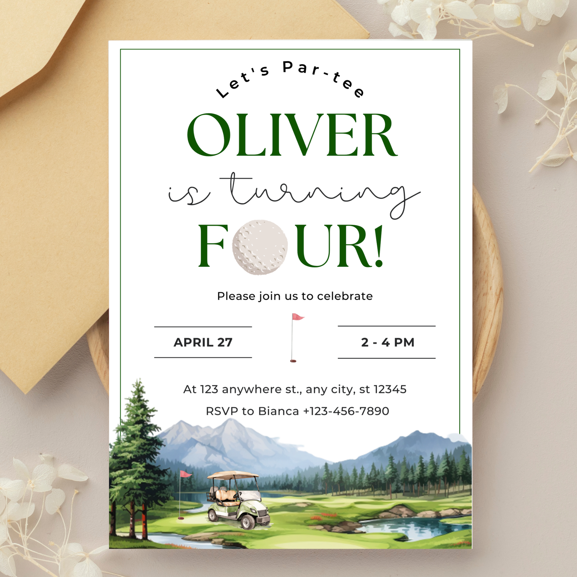 🏌️ The editable “Golf Par-tee” birthday invitation template (for print & digital use)
