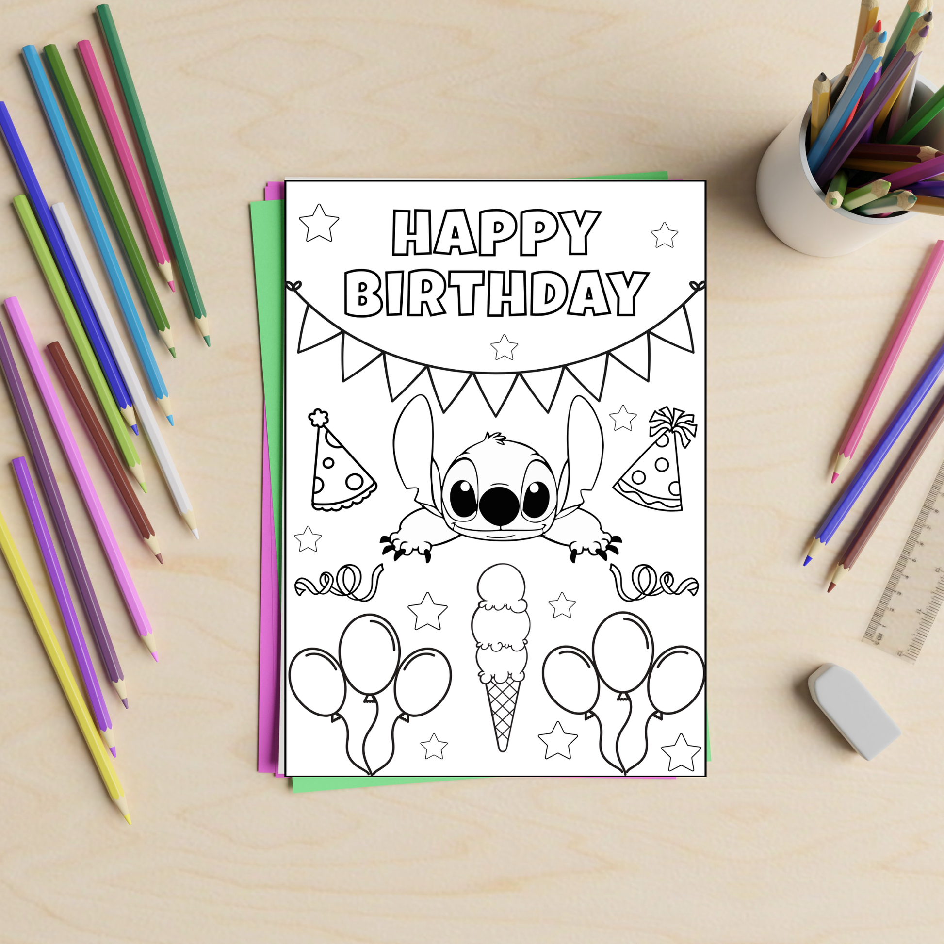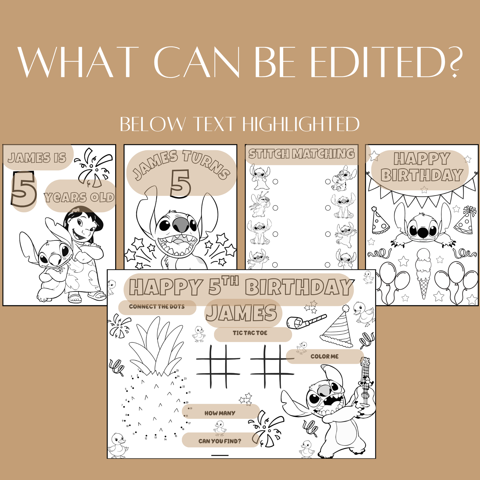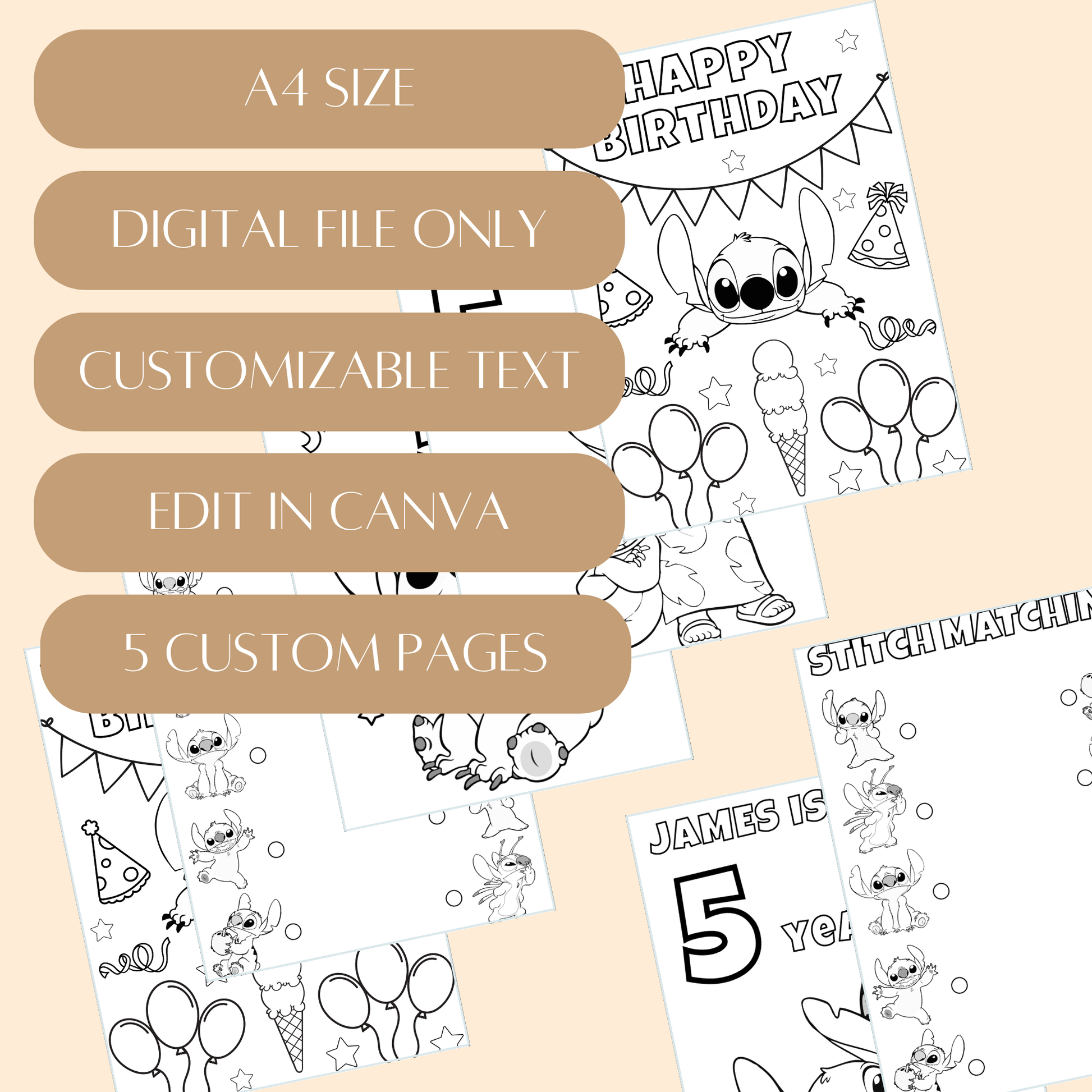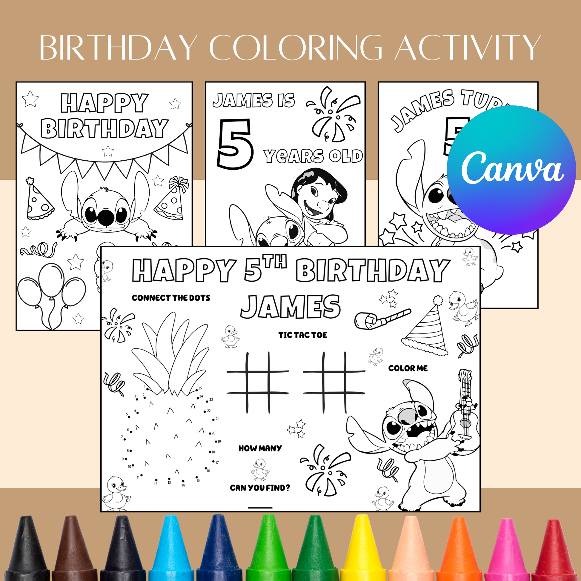 Printable Lilo & Stitch Birthday Coloring Activity – Editable Template – Digital Download
