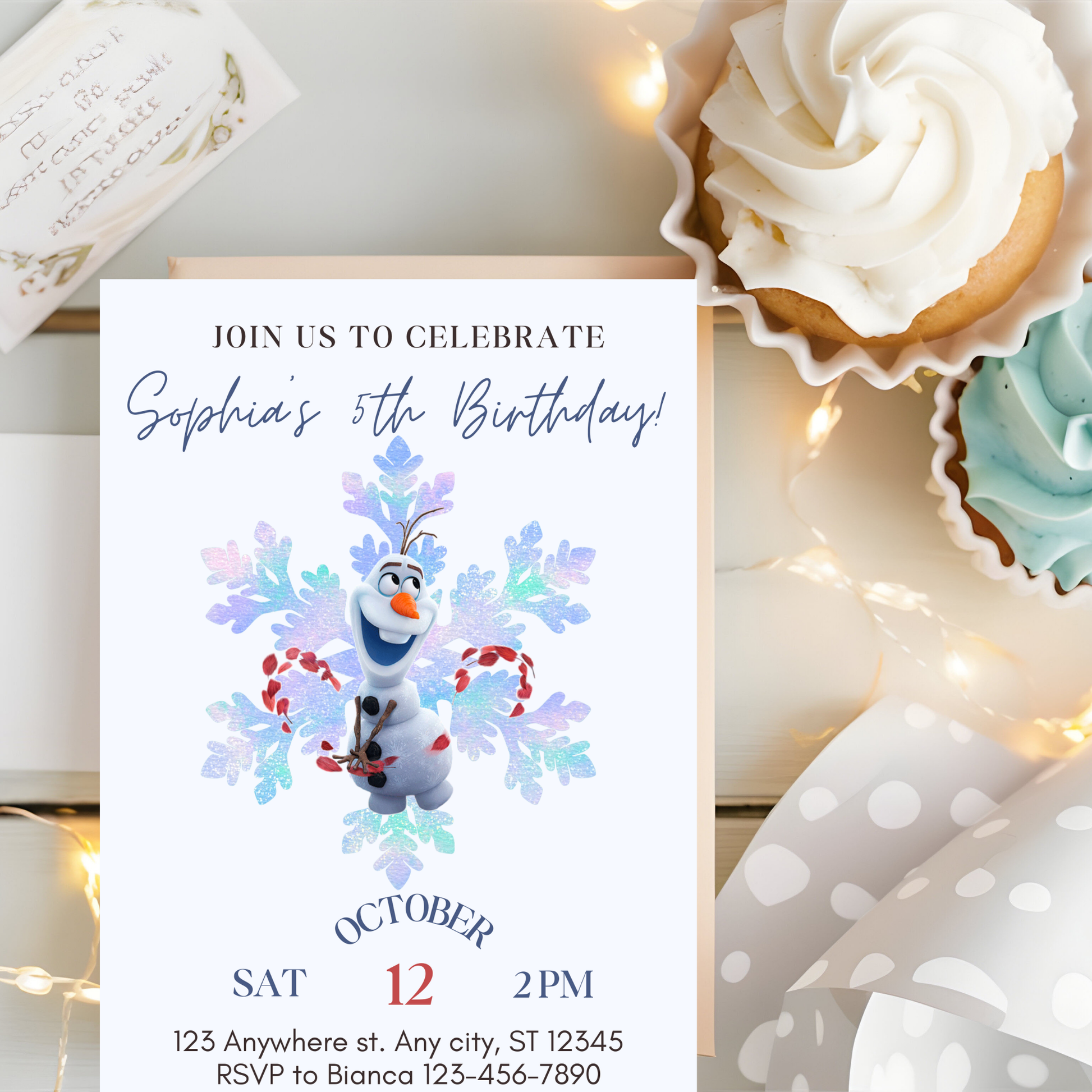 Bring the magic of Olaf to your little one’s special day with this elegant, snow-kissed invitation—perfect for winter birthdays and fans of heartwarming simplicity! ⛄❄️💙