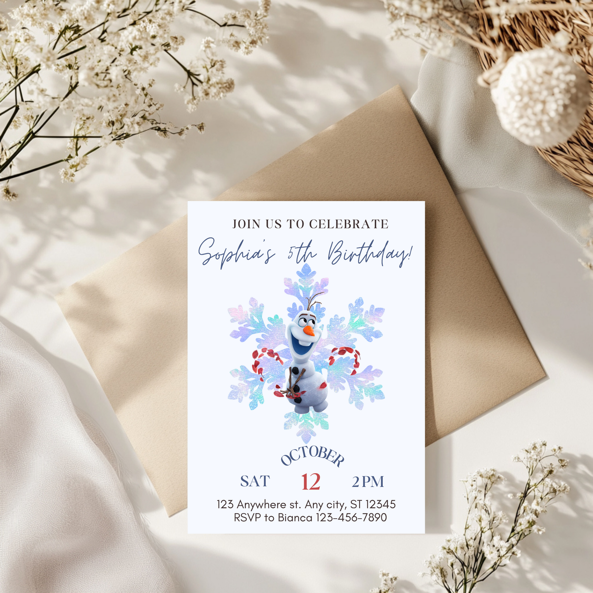 📎 The editable Olaf minimalist birthday invitation template (digital + printable formats)