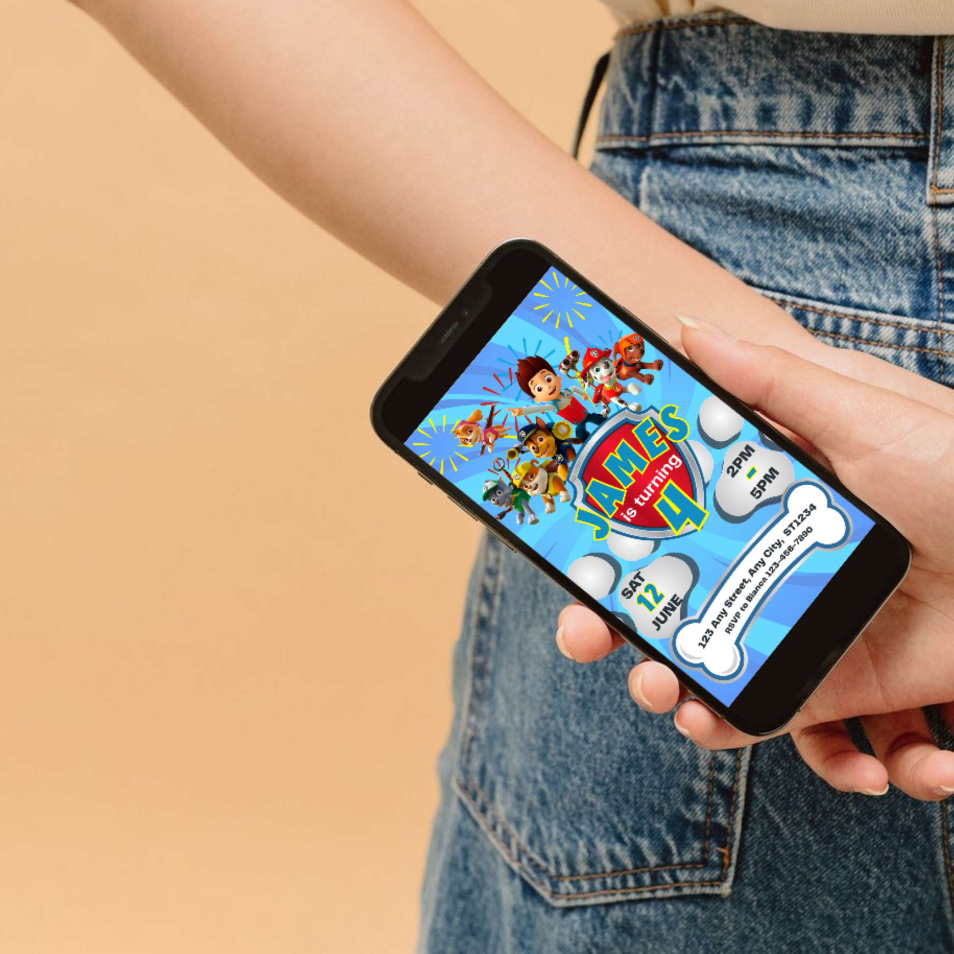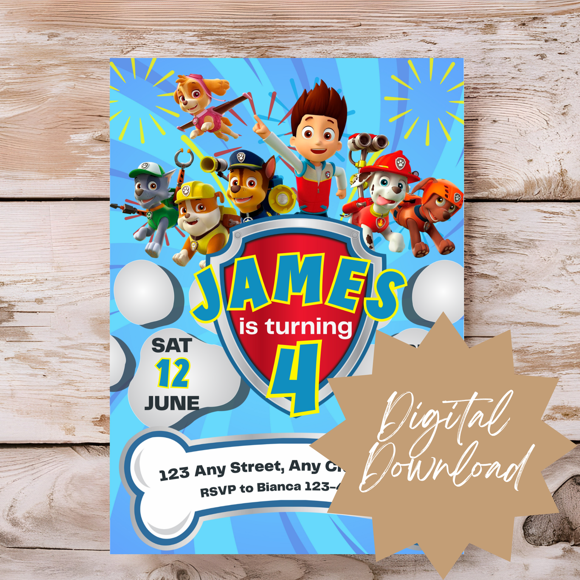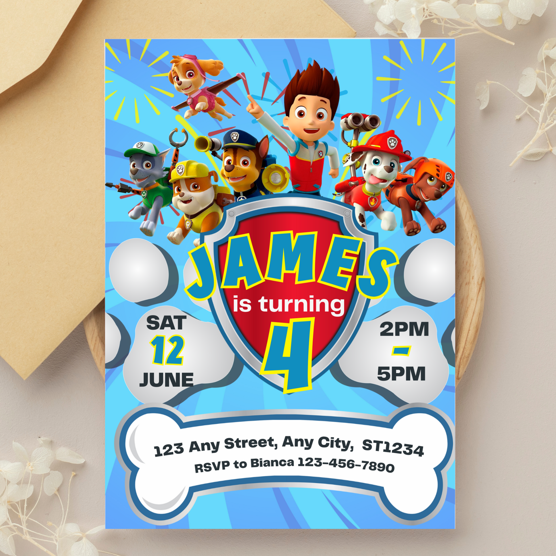 🐶 The editable blue Paw Patrol birthday invitation (for print & digital use)