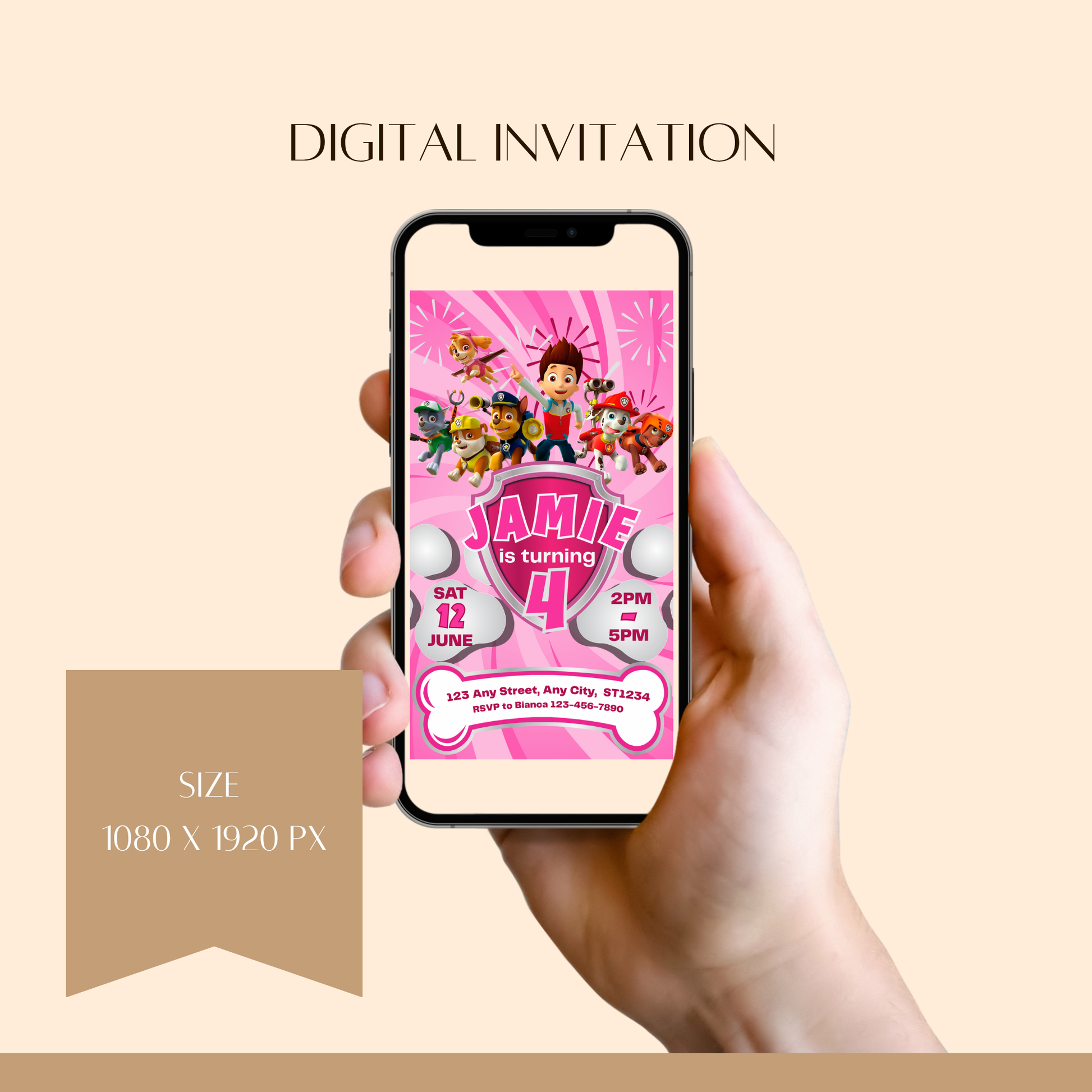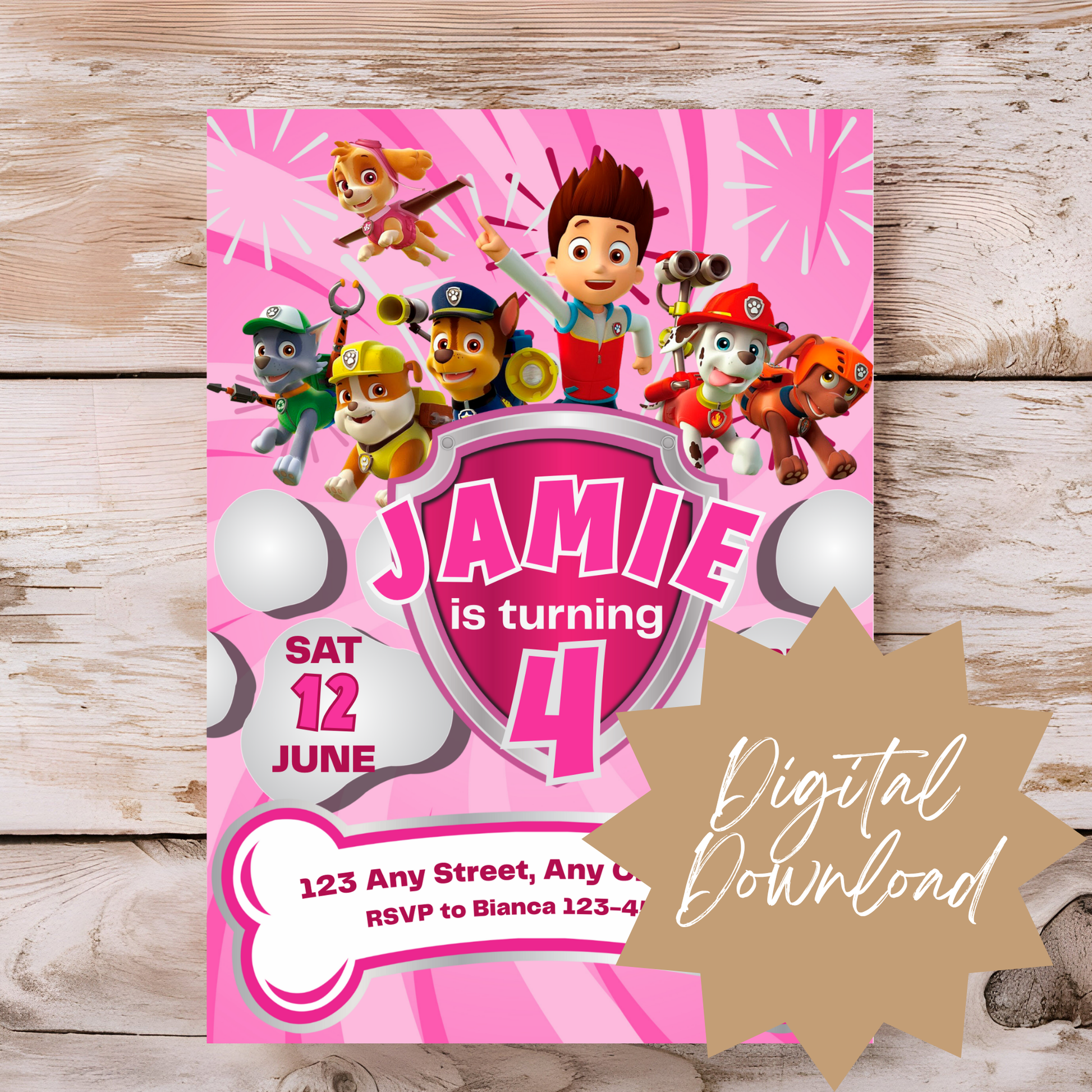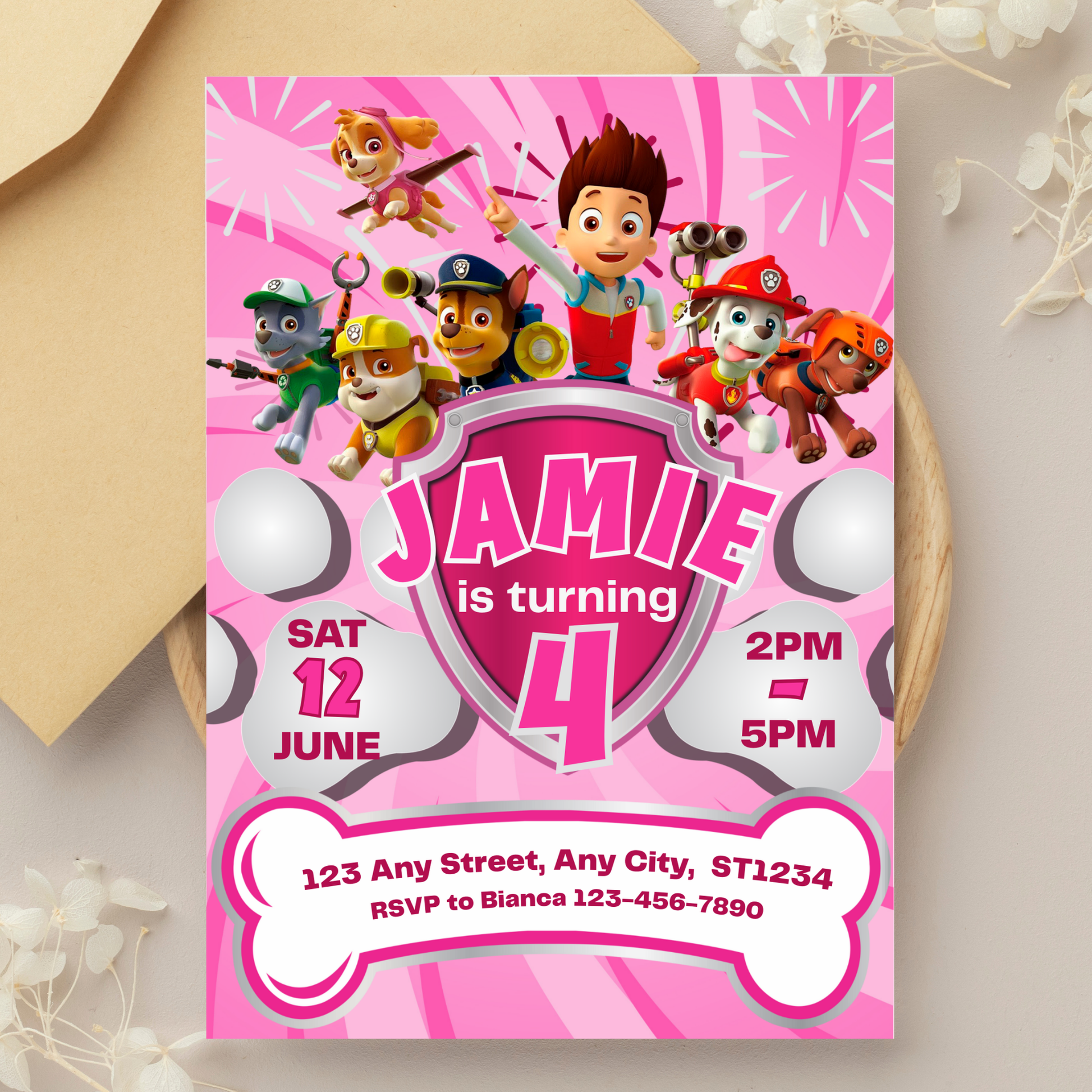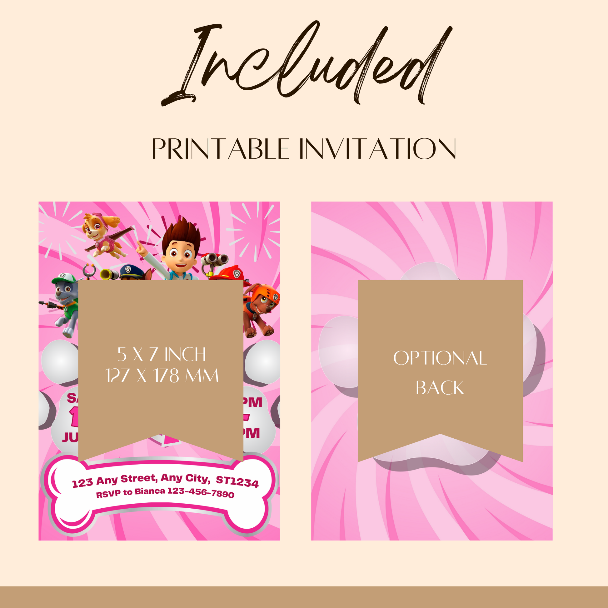 Make your birthday girl feel like the leader of the Paw Patrol with this sweet, editable pink invitation set – the paw-fect start to a fun-filled party! 💕🐾