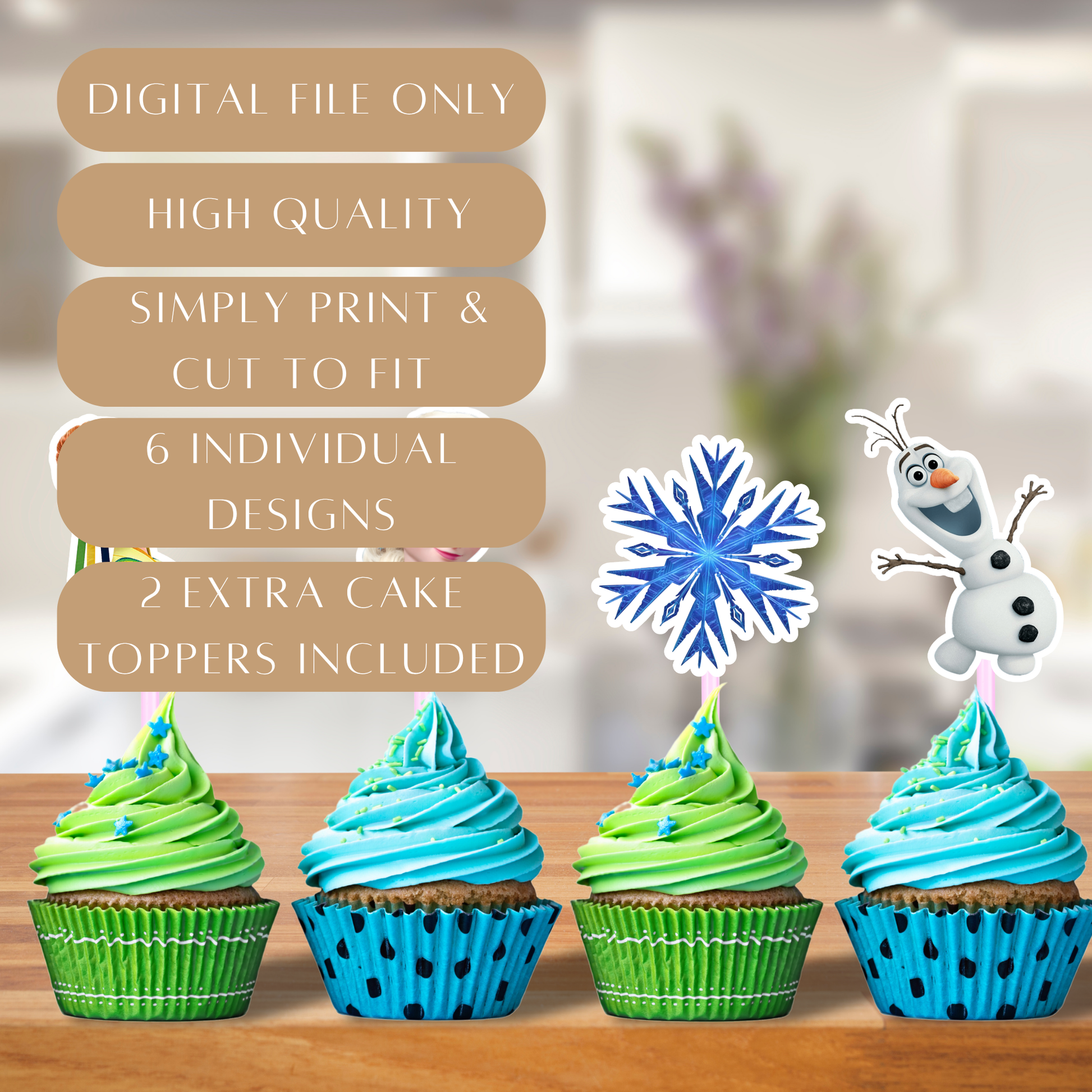 🧁 Includes 6 beautiful Frozen designs, plus 2 additional (optional) cake toppers – perfect for cakes, cupcakes, snack toppers, or party decorations!