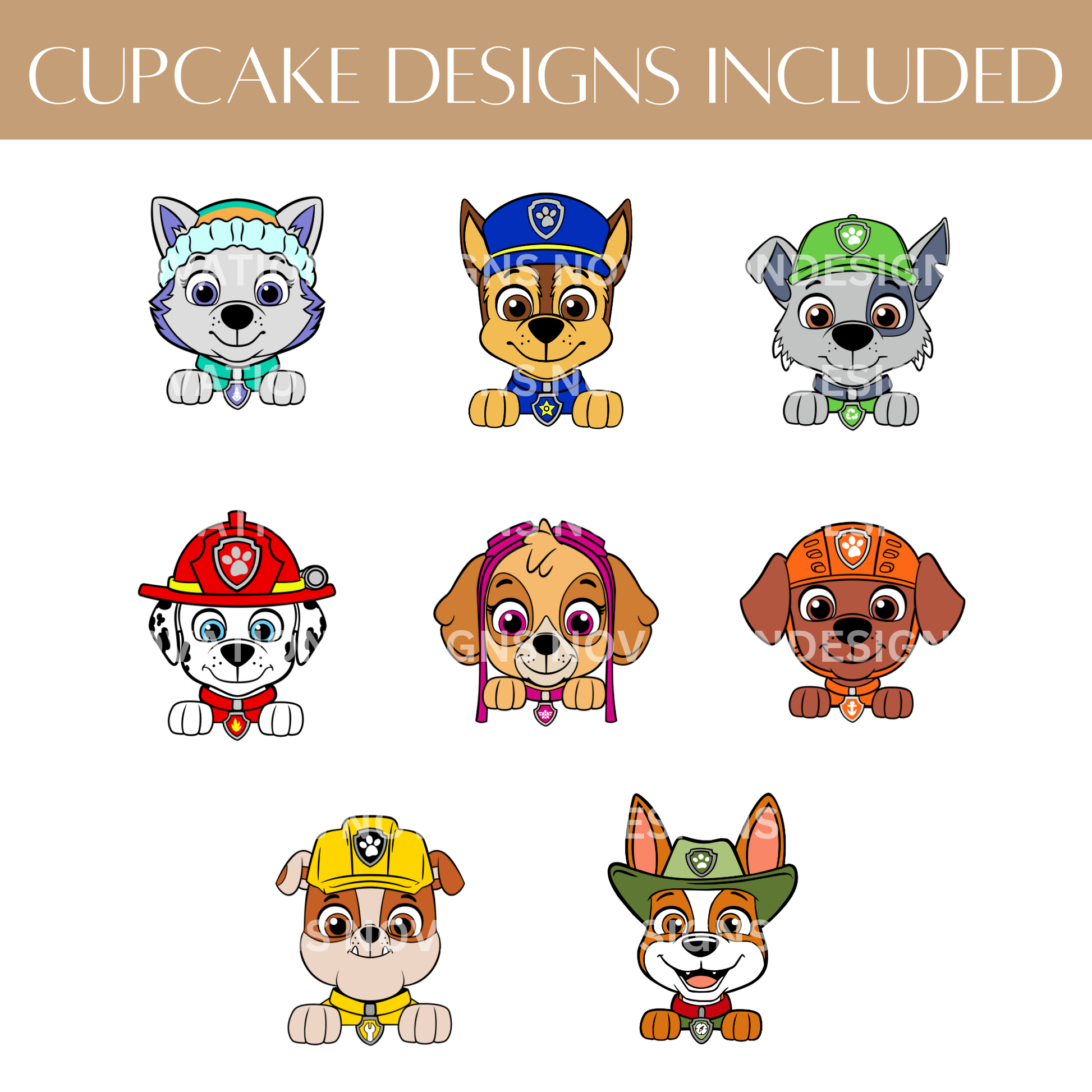 High-resolution JPG file with multiple Paw Patrol character toppers