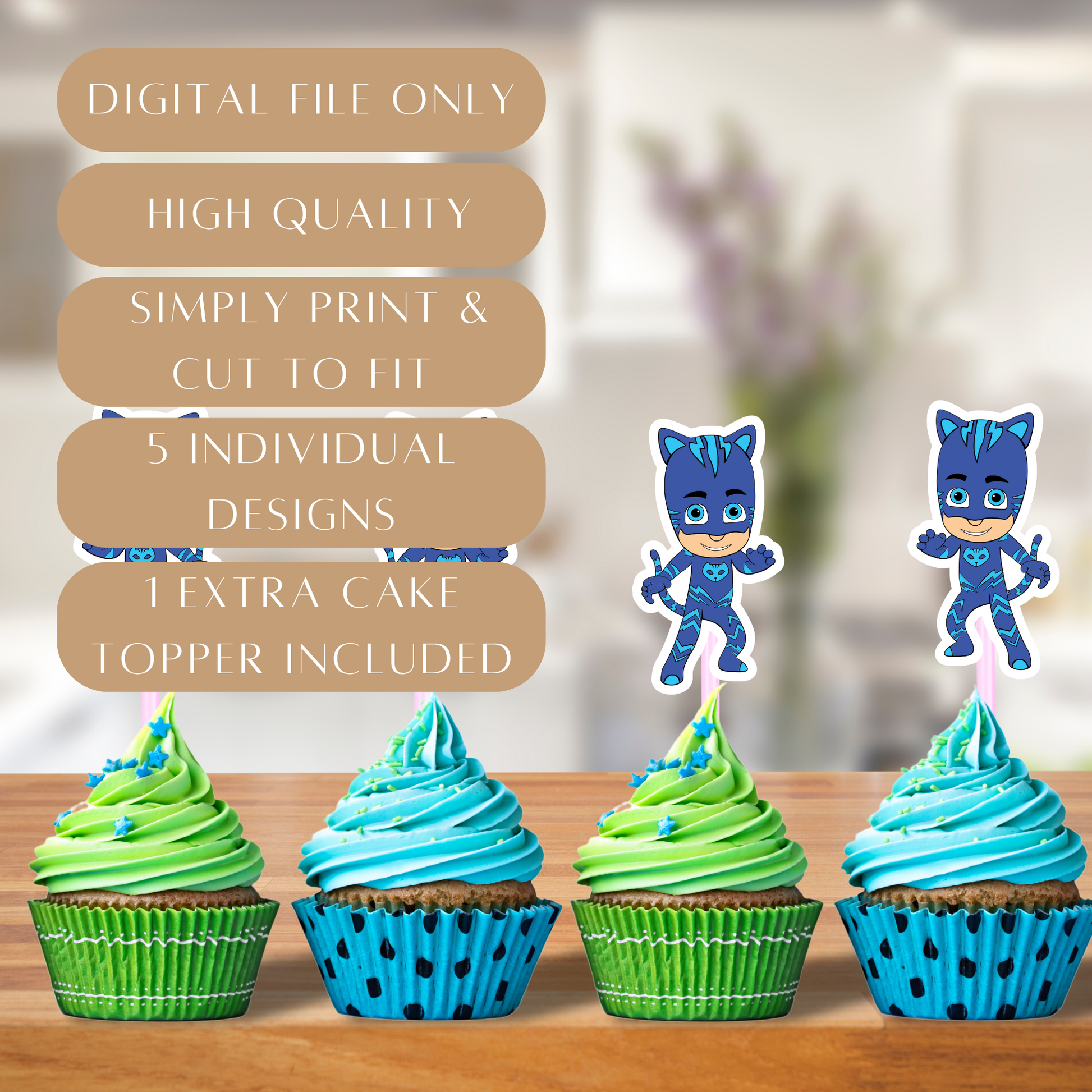 Let Catboy, Owlette, and Gekko save the day with these adorable PJ Masks cupcake toppers – the perfect finishing touch for your little hero’s big day! 🧁✨