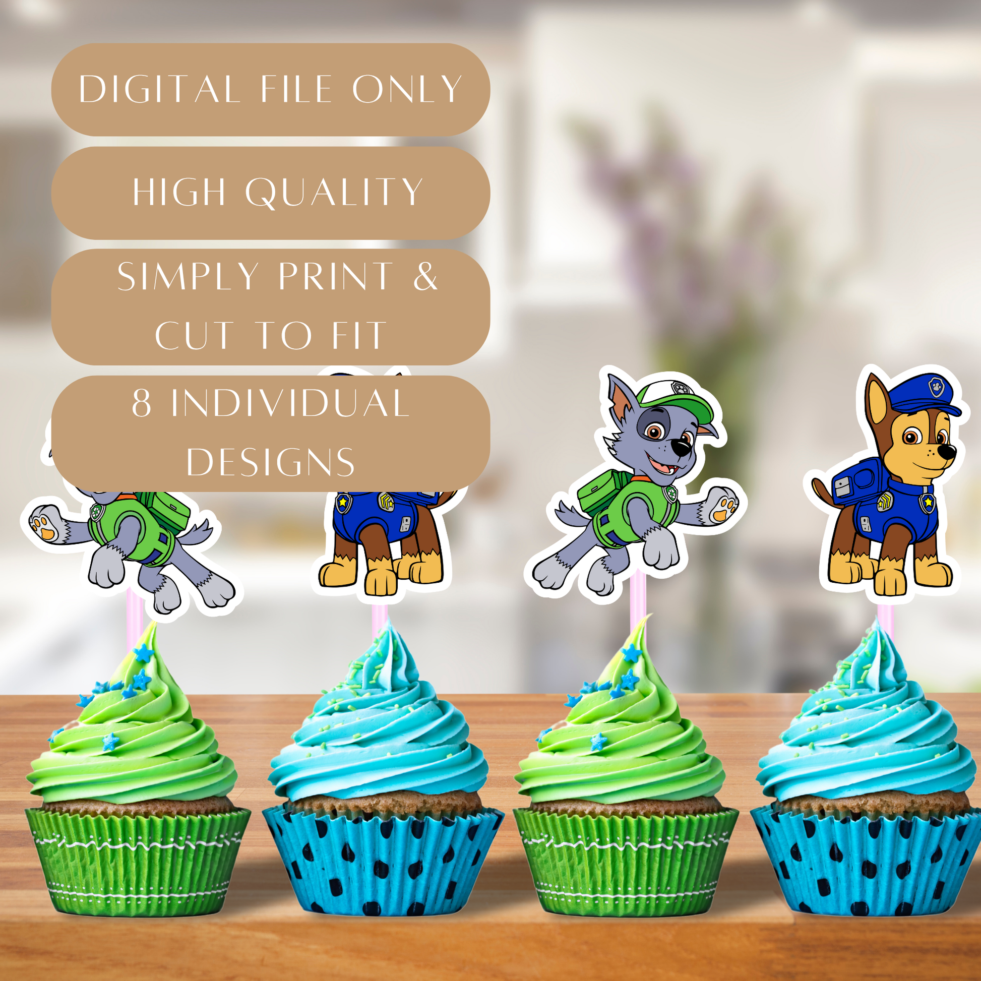 Whether you're throwing a full-on Paw Patrol bash or just need a cute touch for cupcakes, these toppers will have your party guests barking with joy!