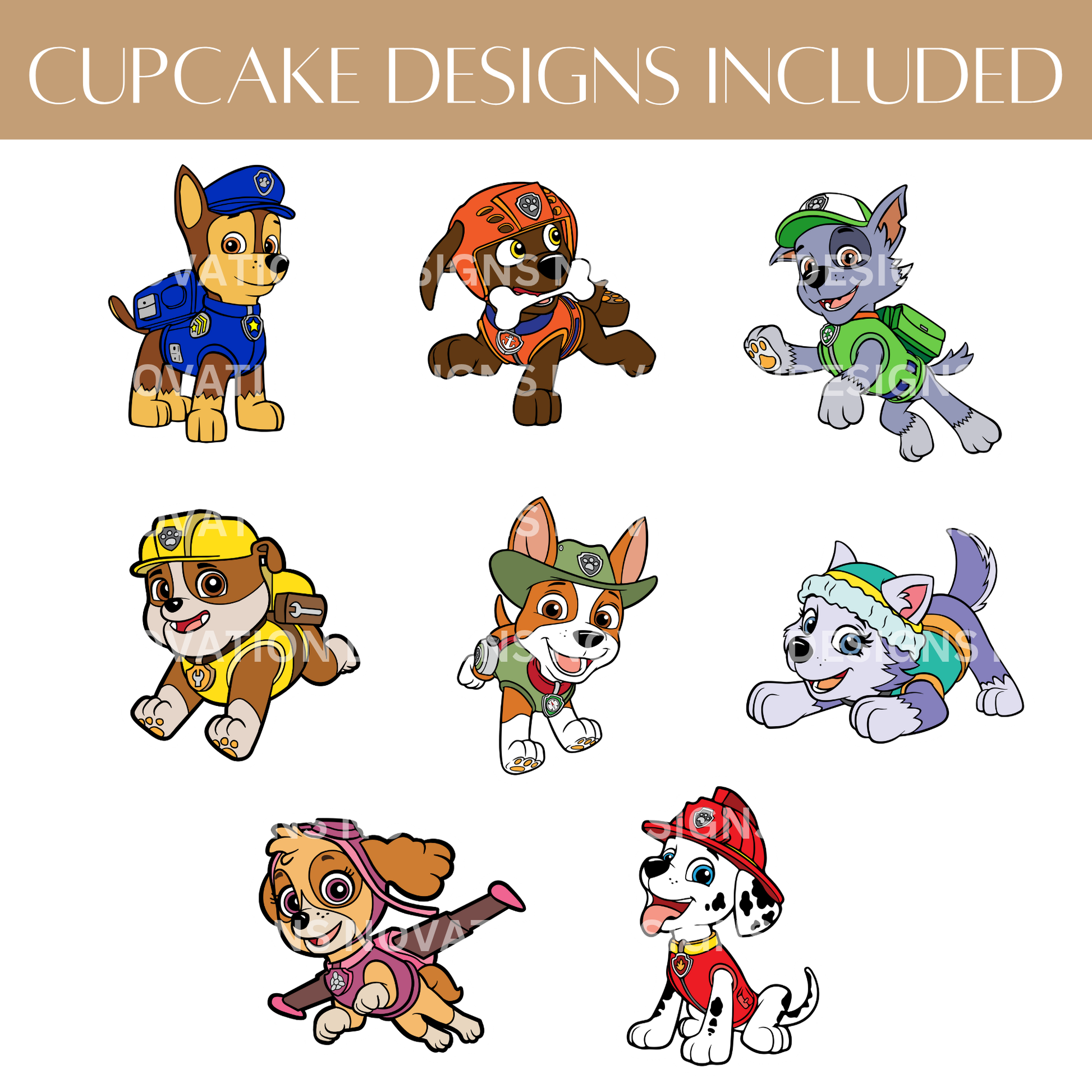 🎈 High-resolution PDF file with multiple Paw Patrol character toppers