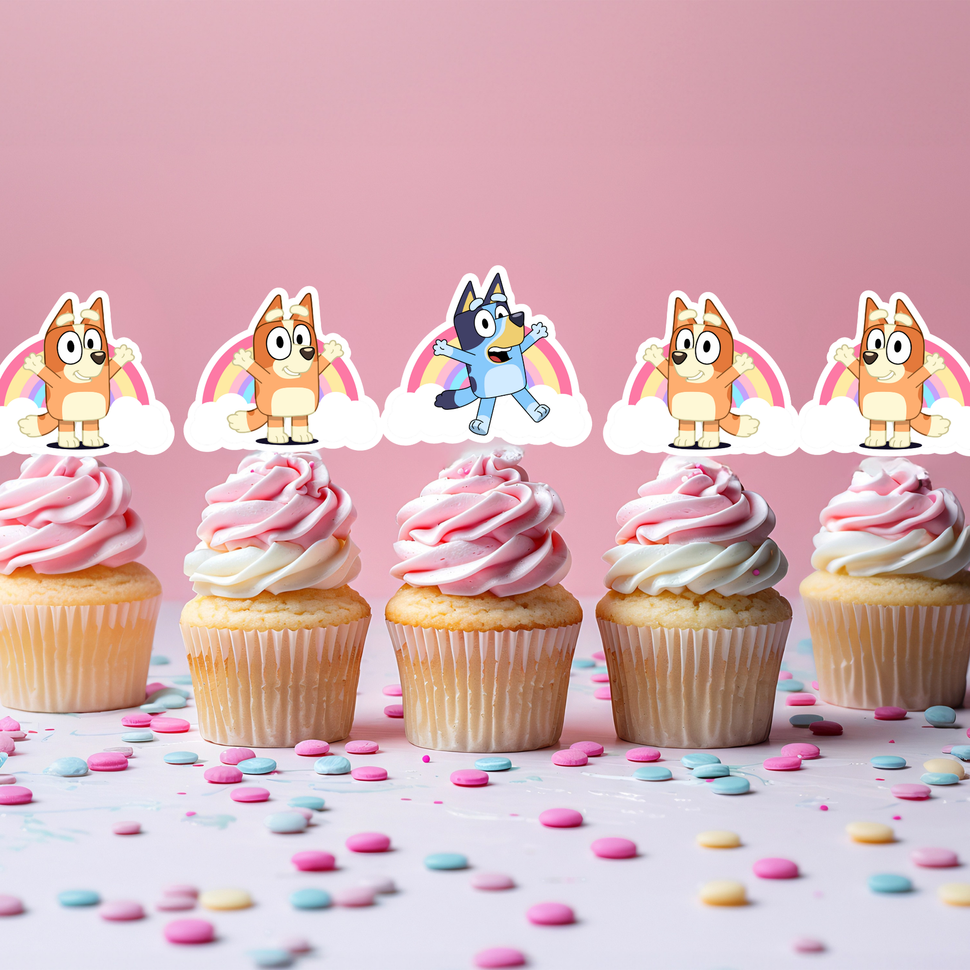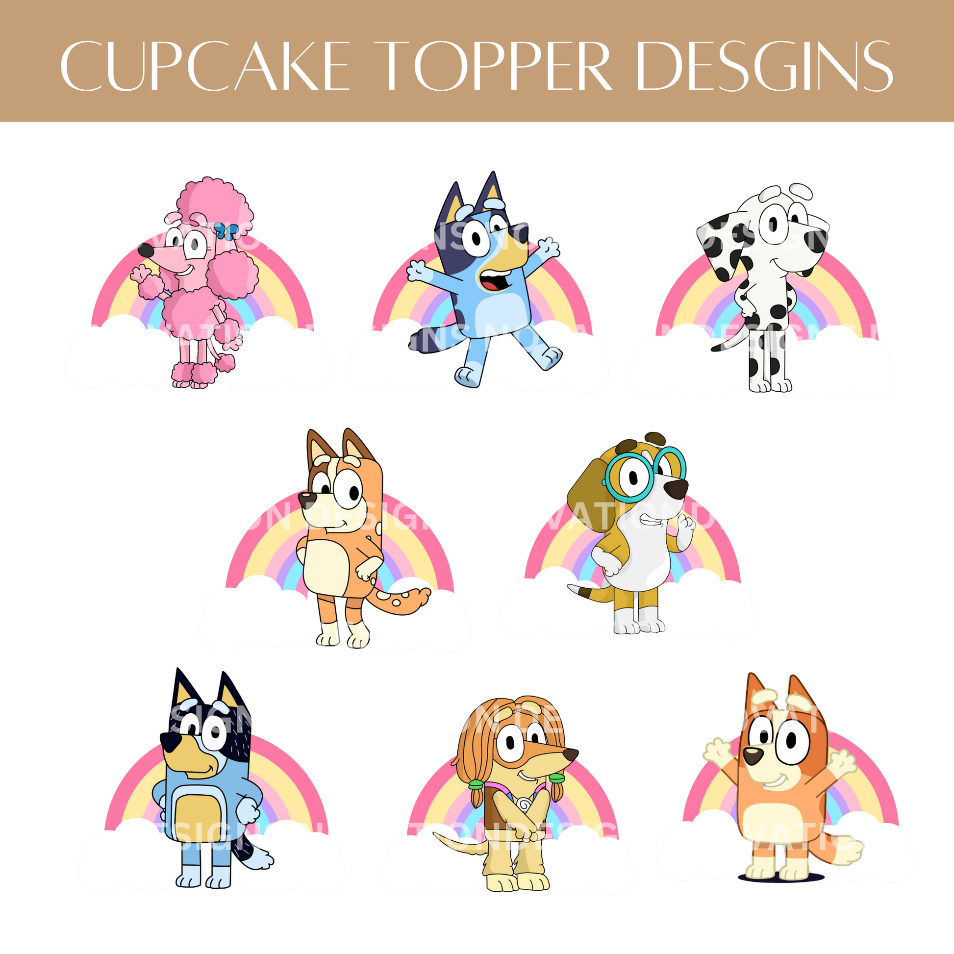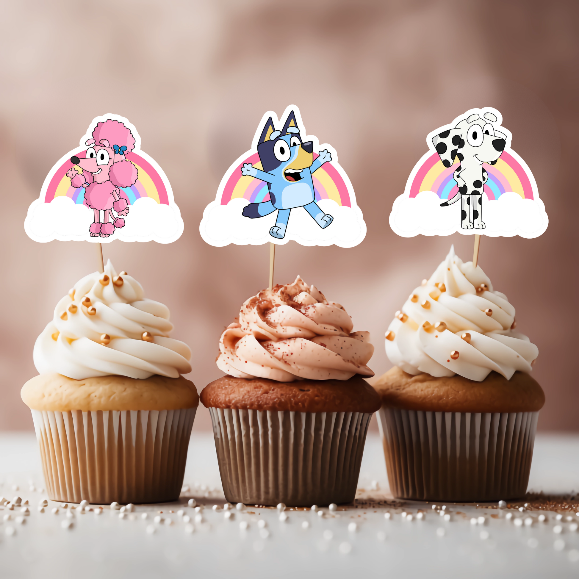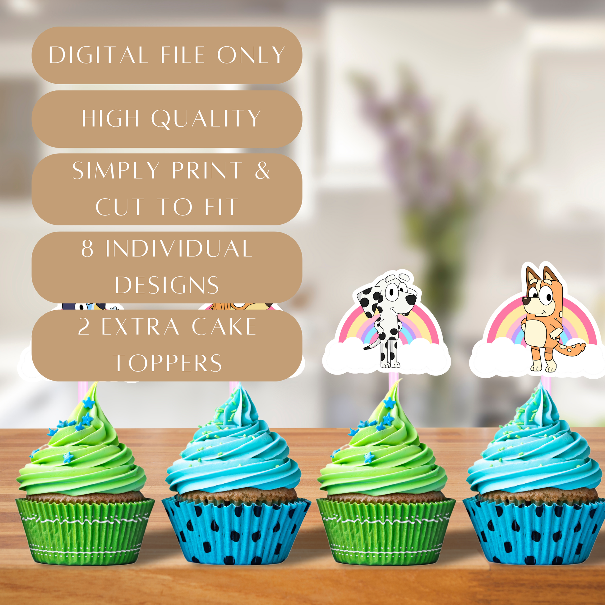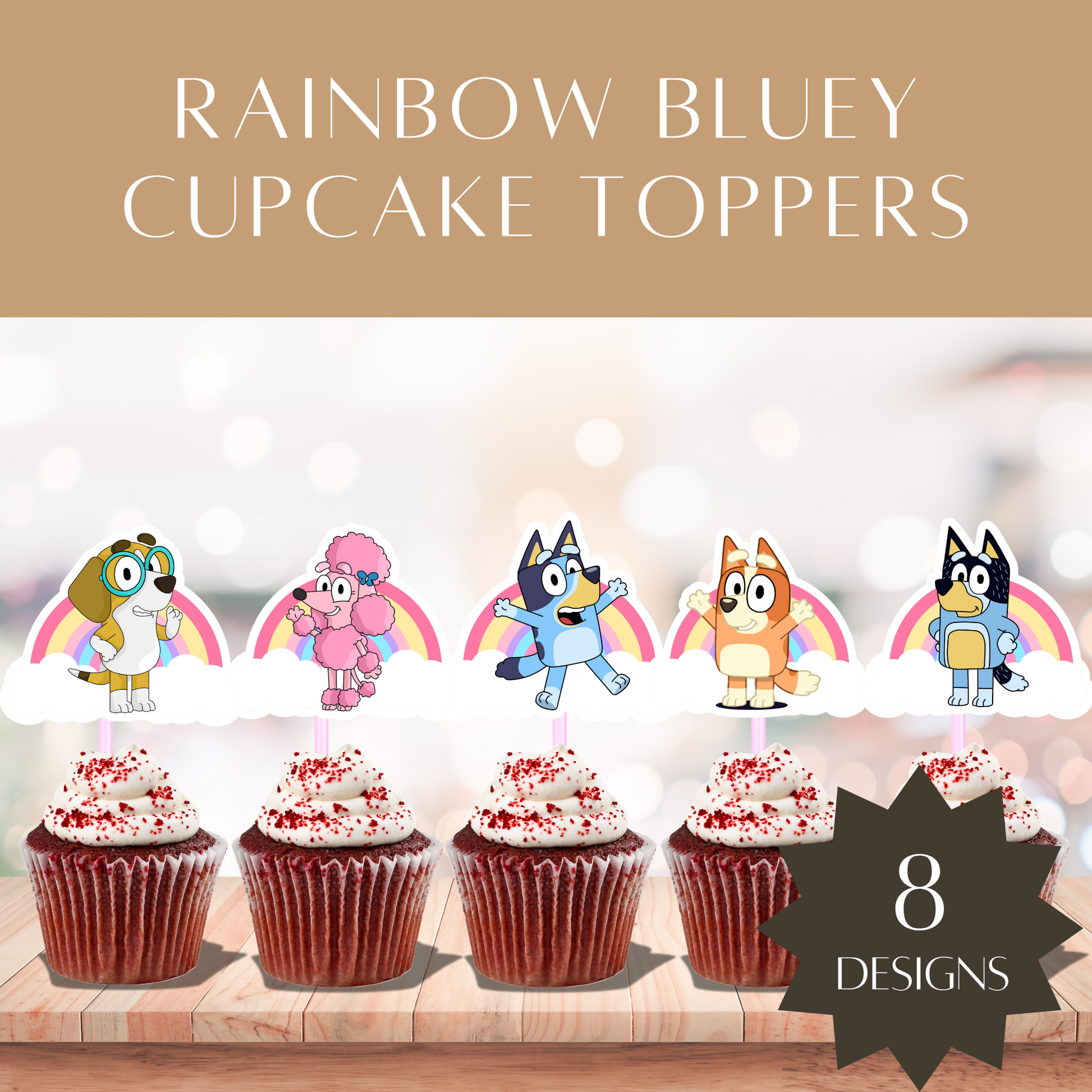 Add a touch of fun to your child's birthday celebration with our delightful rainbow bluey cupcake toppers! Perfect for a Bluey birthday party or Bluey theme party, these vibrant cupcake toppers will bring smiles to all the little guests. Designed as adorable Bluey family toppers, they are easy to use and create a festive atmosphere that complements your party decor. Plus, with our instant download option, you can print these printable toppers right at home and get your treats ready in no time. Make your celebration unforgettable with these charming Bluey cupcake toppers!