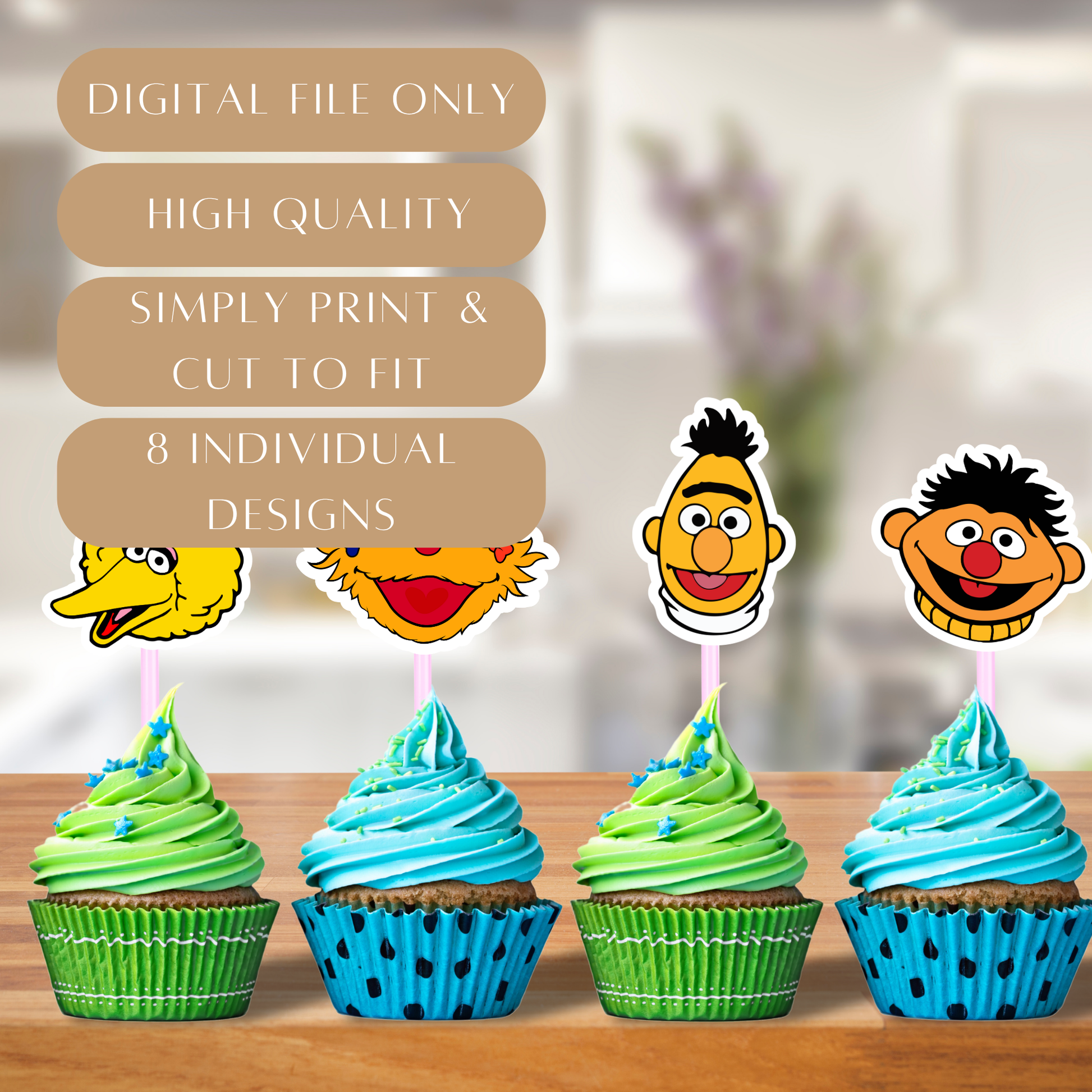 Printable Sesame Street Cupcake Toppers – Digital Download
