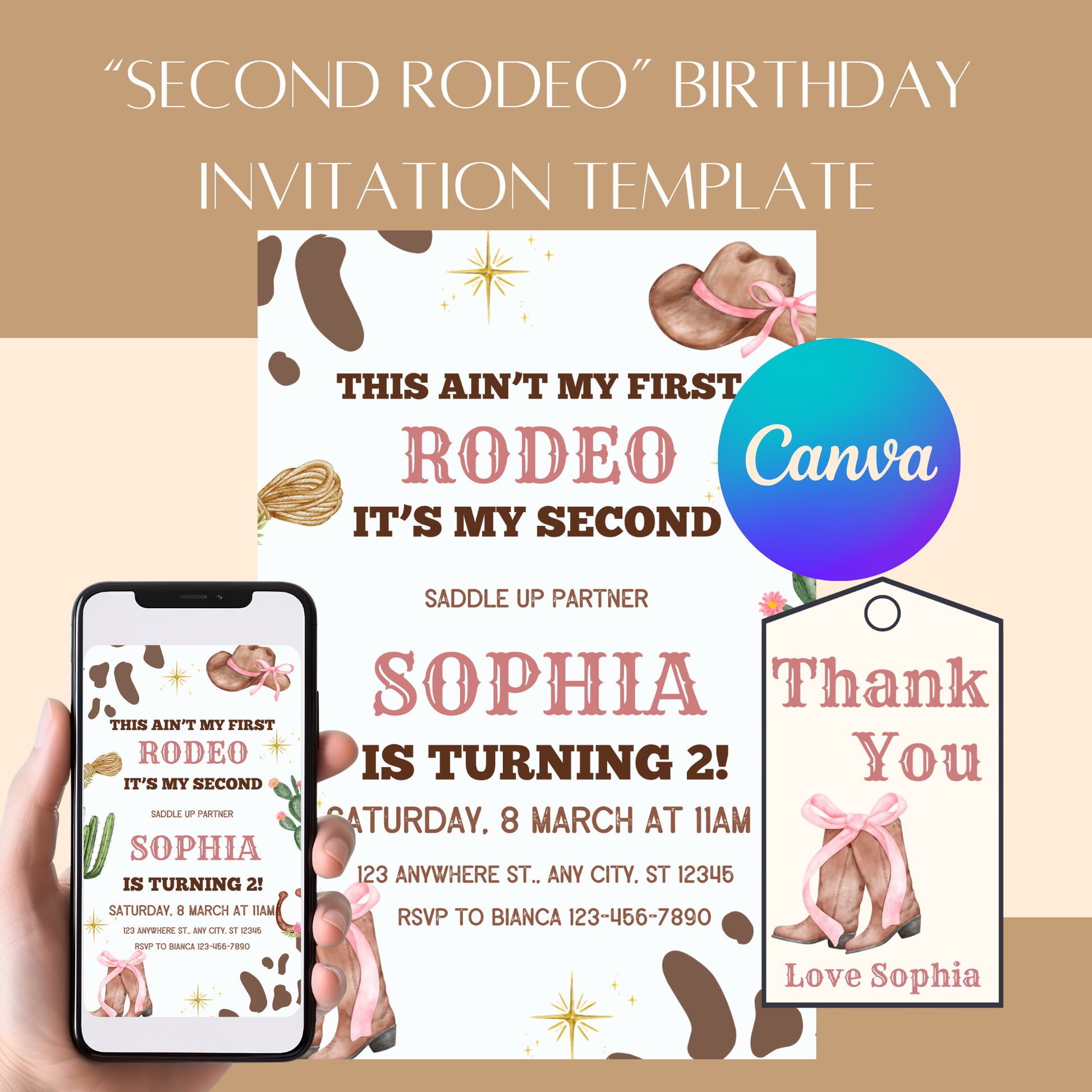 🎀 Link to the editable “2nd Rodeo” invitation template (for both print and digital use)