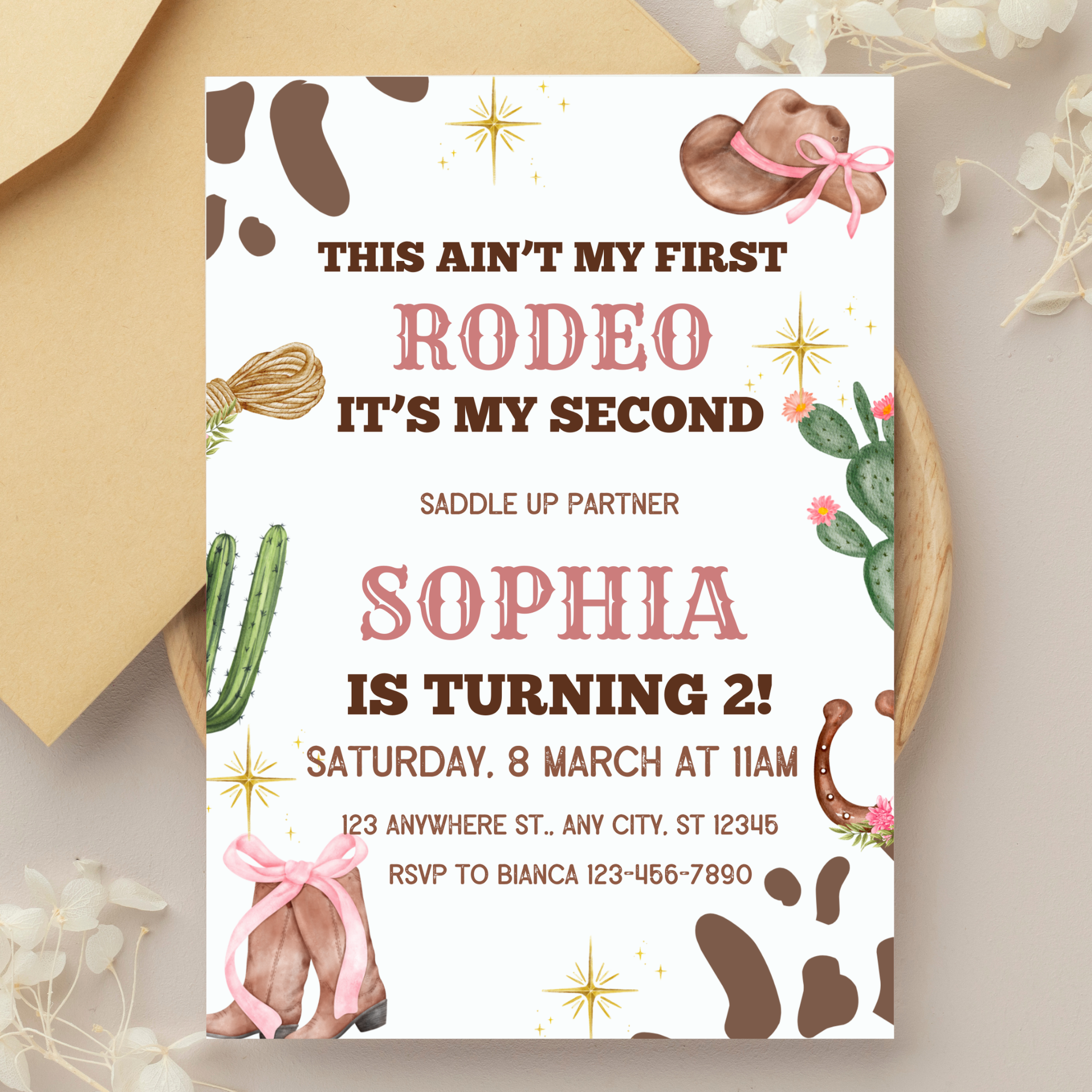 Giddy up and get ready to party with this “2nd Rodeo” editable invitation set – the perfect way to kick off a yeehaw-worthy birthday celebration for your sweet little cowgirl! 💕🐴🎉