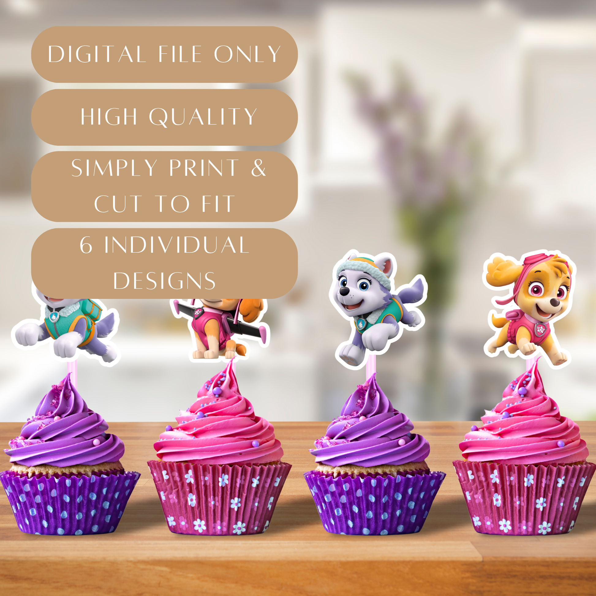 🐶 Includes 6 unique Skye & Everest designs – Perfect for cupcakes, treats, or dessert tables!