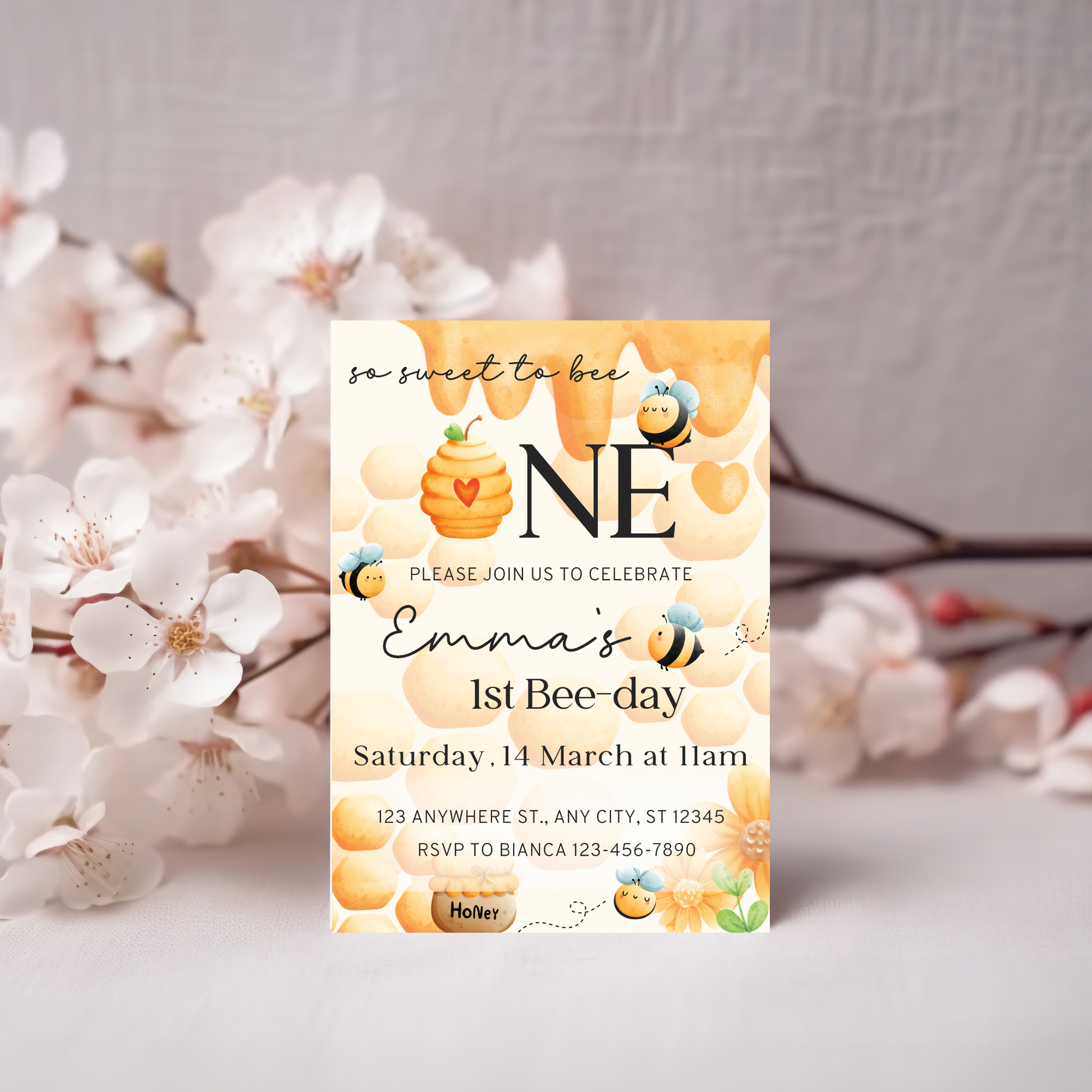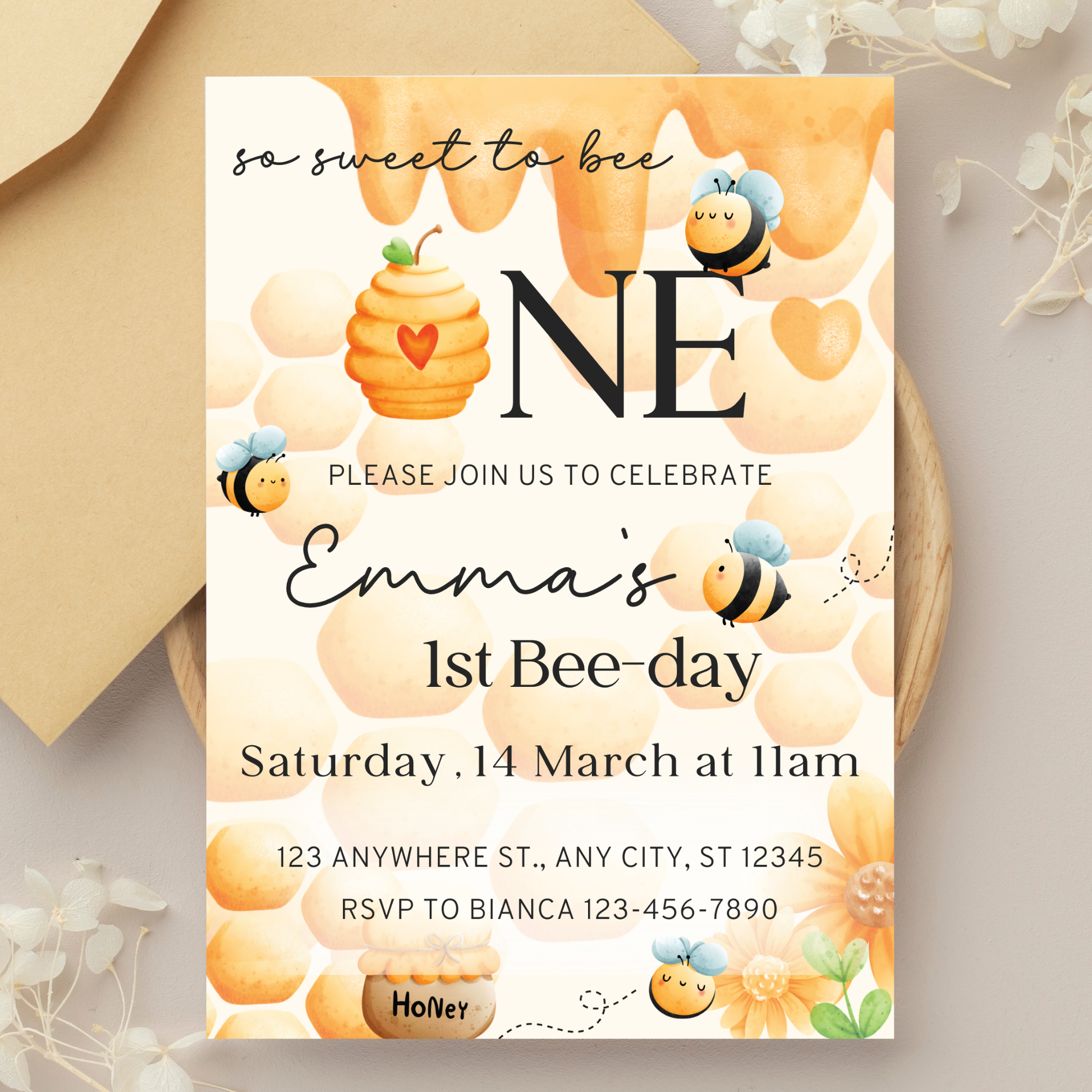 🍯 The editable “Sweet to Bee” invitation template (for print & digital use)