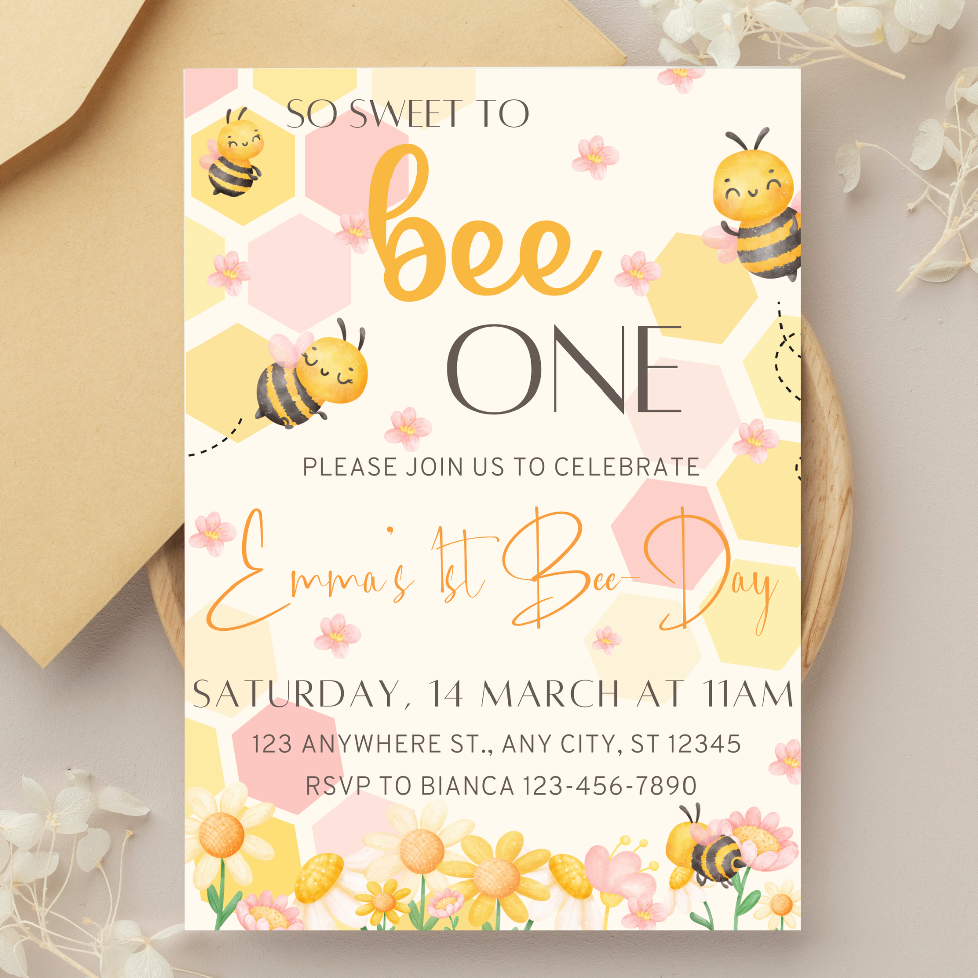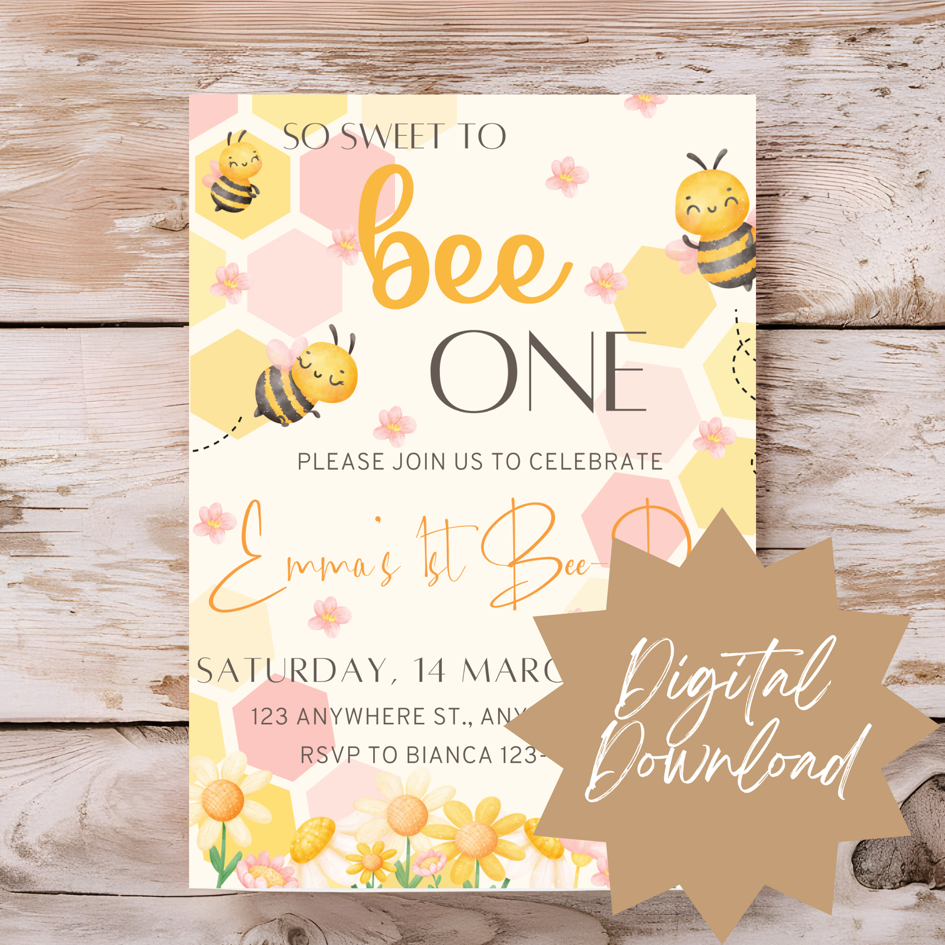 🍯 The editable “Sweet to Bee” invitation template (for print & digital use)