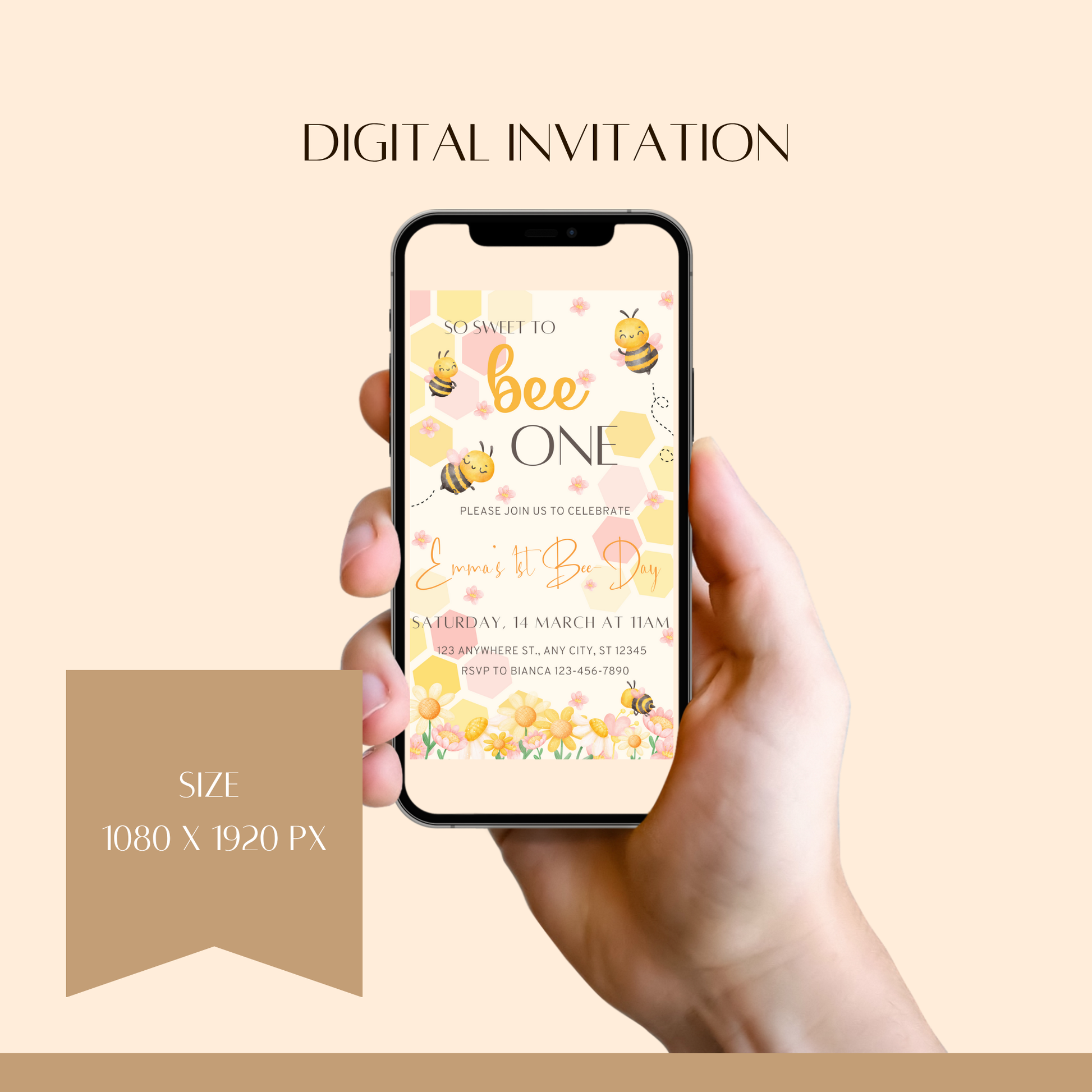 🐝 Digital Invitation Included – Send your invite via email, text, or WhatsApp.